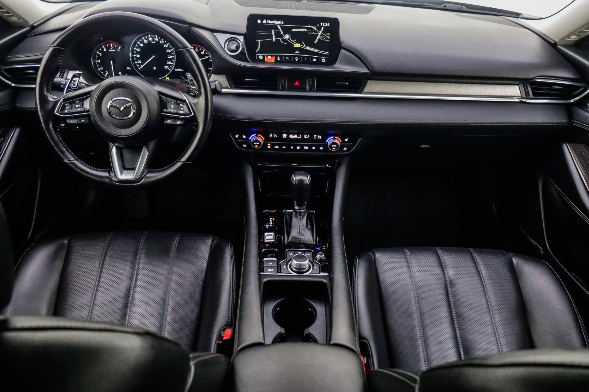Zoals u mag verwachten van deze Mazda 6 Sportbreak is hij uitgerust met een reeks aan actieve veiligheidssystemen. Dat de auto steeds meer taken van de bestuurder overneemt, merkt u bijvoorbeeld aan het systeem voor verkeersbord-detectie in deze auto. Ongemerkt buiten de rijstrook raken? Nee hoor, het Lane-keeping systeem waarschuwt en corrigeert. Het risico van een kop-staartbotsing wordt aanzienlijk verminderd door de forward collision warning. Ook helpen het head-up display, dodehoekdetectie, hill hold functie, brake assist, vermoeidheidsherkenning en bandenspanningcontrolesysteem, uw rit tot een veilige rit te maken.