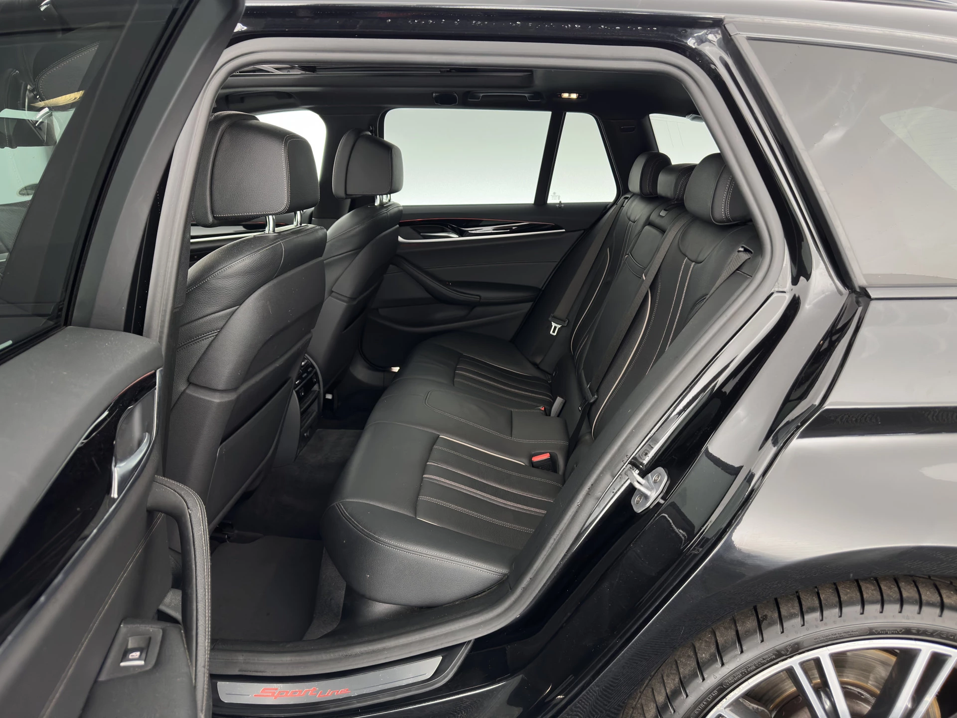 ⭐ BMW 5-serie Touring 530d M-Sport High Executive – Automaat | in Black Sapphire Metallic met Luxury-Leather Dakota zwart met exclusief wit stiksel | Krachtig, Luxe & Sportief