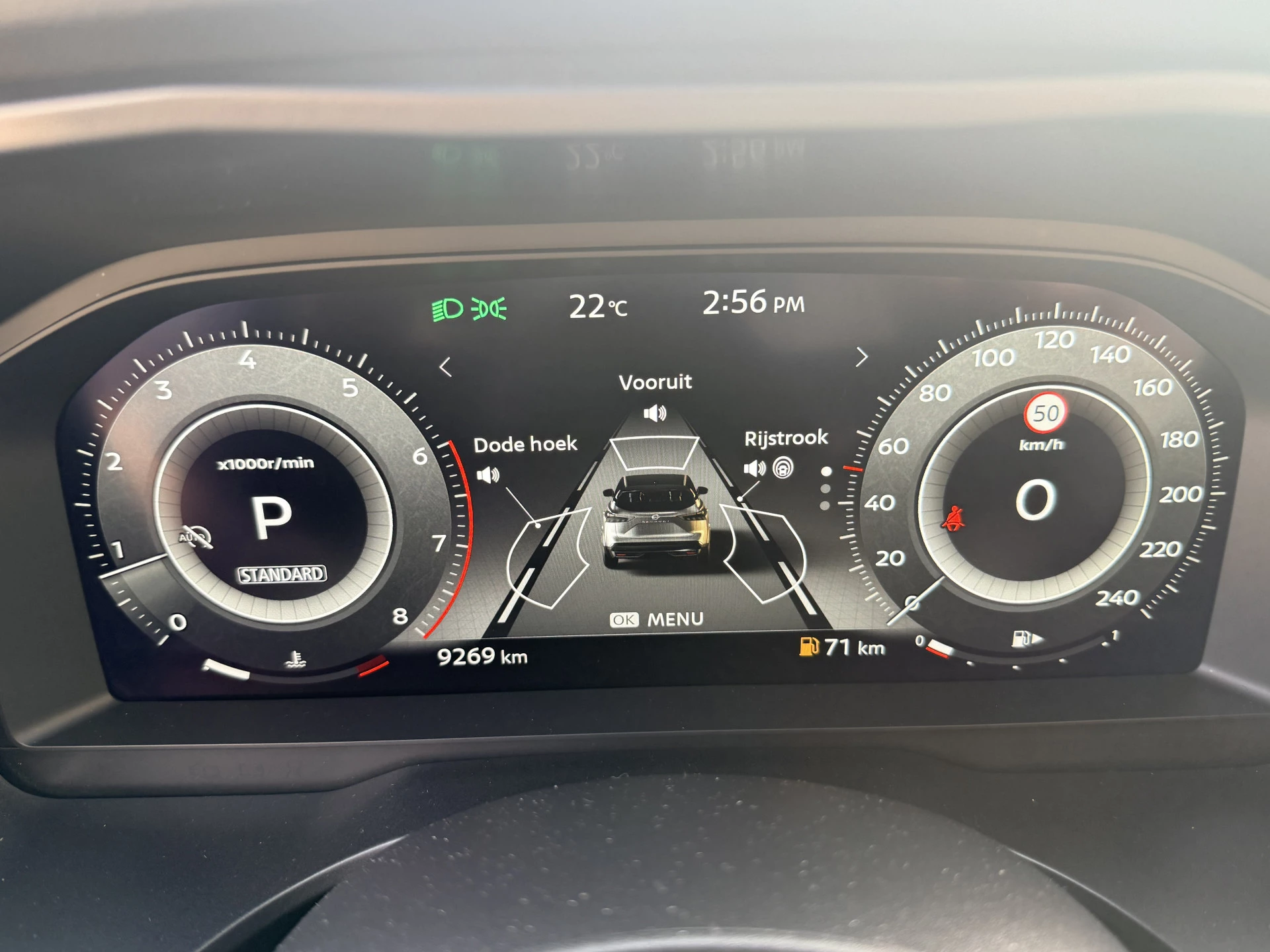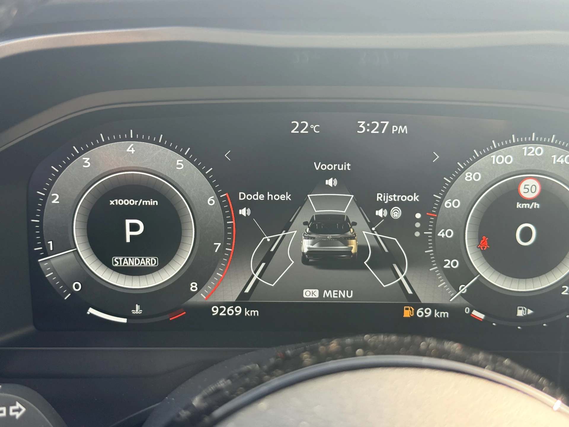 De automatische veiligheidssystemen in deze Nissan fungeren als een extra paar ogen. En dat niet alleen, ze kunnen ook actief ingrijpen, om zo u en uw passagiers te beschermen. In het instrumentarium ziet u tijdens de rit ook de belangrijkste verkeersborden aangegeven, die de auto automatisch voor u leest. Indien u onbedoeld de rijstrook lijkt te verlaten, reageert het Lane-keeping systeem meteen en corrigeert. De actieve dodehoekdetectie draagt bij aan uw eigen veiligheid en die van uw medeweggebruikers. U bent mede dankzij forward collision warning system, hill hold functie, brake assist, vermoeidheidsherkenning en bandenspanningcontrolesysteem steeds veilig onderweg.