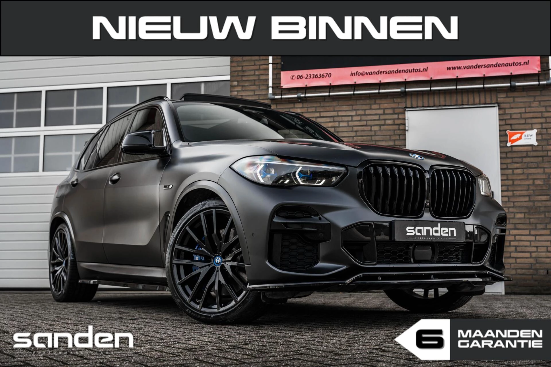BMW X5 xDrive45e High Executive M Sport | 394 pk | NAP | Origineel Nederlands | Frozen Black Mat Zwart | Bowers & Wilkins 3D | Panoramadak | Alcantara hemel | Carbon Interieur | BMW Laser LED | Maxton Design | Uitlaattips | Luchtvering | BMW Individual Merino Leder | Elek. Stoelen met Memory | Stoelverwarming | Stoelventilatie | Head-Up Display | Keyless | Driving Assistant | Adaptive Cruise Control | Standkachel | Elek. Trekhaak | 22 inch M Sport | Blauwe M Sport remklauwen | CarPlay | Elek. stuurverstelling | Verwarmde/verkoelde bekerhouders | Sfeerverlichting | 360º View Camera