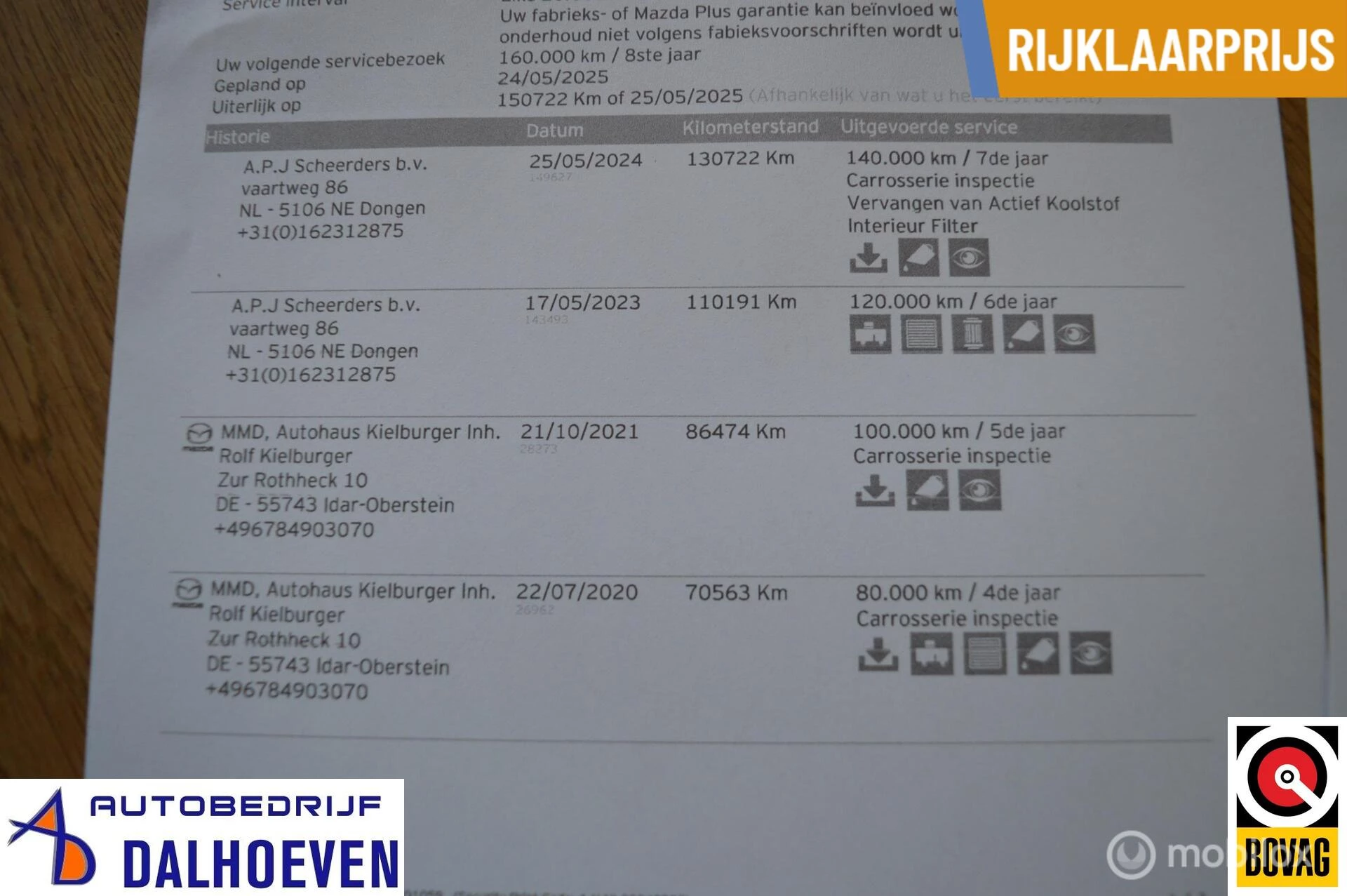 Ook is de digitale onderhoudshistorie aanwezig.