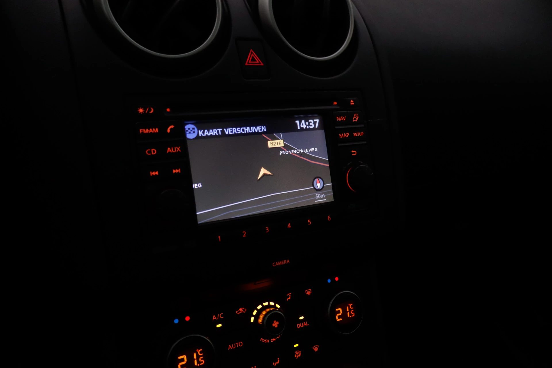 De 360 graden camera op deze auto wordt verzorgd door vier geavanceerde camera's. Het biedt garantie van uitstekende beeldkwaliteit. In een auto als deze kunt u niet zonder automatische airconditioning, zodat de temperatuur altijd goed is. U kunt bij het inparkeren natuurlijk niet aan alle kanten ogen hebben. Daarom is deze Nissan Qashqai voorzien van parkeersensoren! De auto neemt u werk uit handen doordat hij zelf veel in de gaten houdt. Een regensensor en een automatisch inschakelbare verlichting nemen waar wanneer de ruitenwissers en het licht aan moeten. De cruise control zorgt voor een prettige, gelijkmatige koers en minder brandstofgebruik. En deze auto heeft ook full map navigatiesysteem, automatisch dimmende binnenspiegel en lederen stuur als standaard uitrusting.