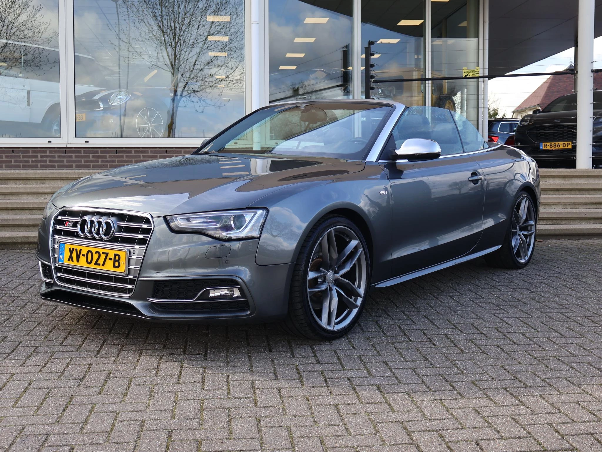 Audi S5 cabrio 3.0 TFSI 333 PK Quattro automaat met 7 versnellingen, Zwart leder interieur met stoelverwarming en verkoeling, Afneembare trekhaak met 1900 KG trekgewicht, Bang & Olufsen premium sound, Xenon met LED dagrijverlichting, Parkeersensoren voor + achter, Elektrische stoelverstelling, 20 inch lichtmetalen velgen, Bluetooth, S-line sportstuurwiel, Keyless-drive, Cruise control, Climate control.