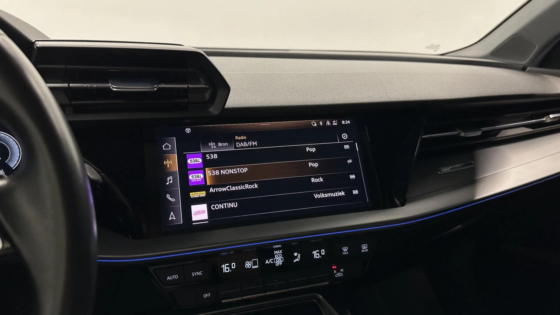 In deze auto zijn verschillende technologieën aanwezig die voor u het verkeer en de omgeving in de gaten houden en die desnoods ook kunnen remmen of bijsturen. Dat de auto steeds meer taken van de bestuurder overneemt, merkt u bijvoorbeeld aan het systeem voor verkeersbord-detectie in deze Audi. Het Lane-keeping systeem zorgt dat u mooi binnen de lijntjes blijft. Ongemerkt buiten de rijstrook komen is er niet meer bij. Wanneer u hard moet remmen, is elke decimeter verkorting van de remweg essentieel. Voor extra remkracht zorgt dan de Brake Assist.