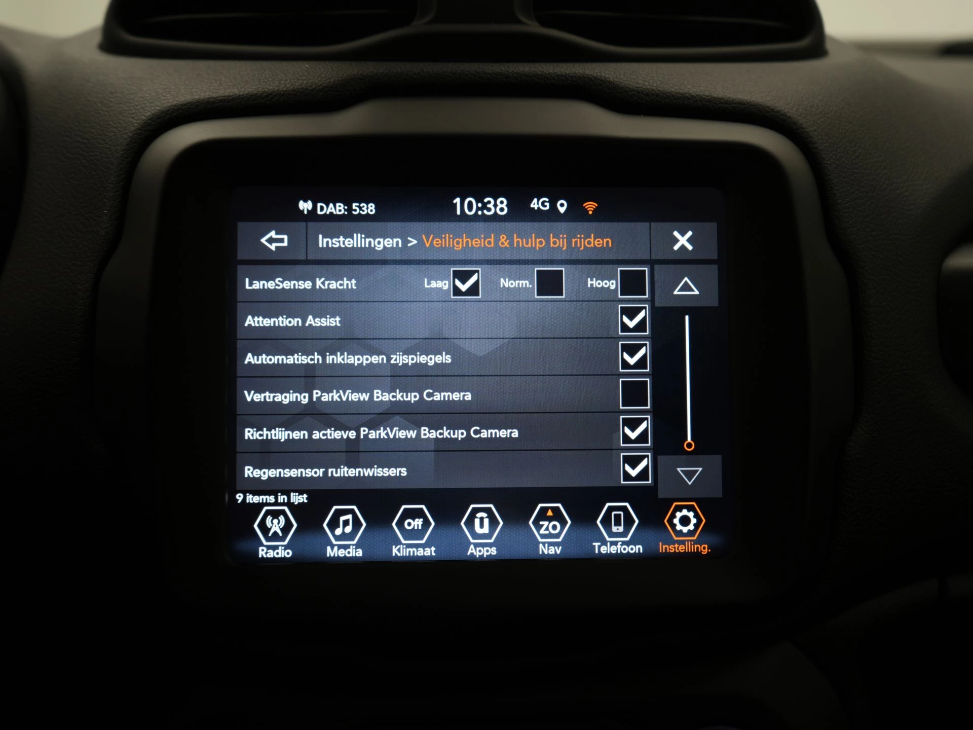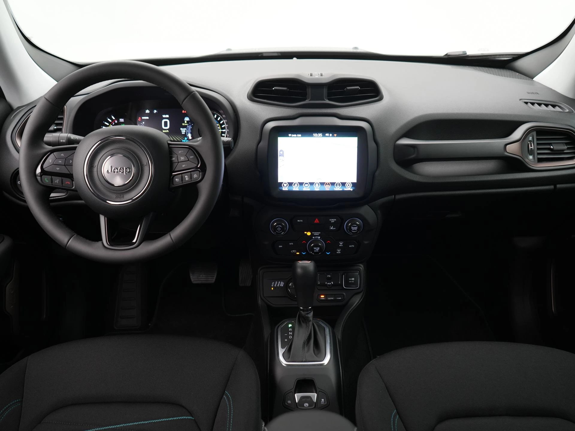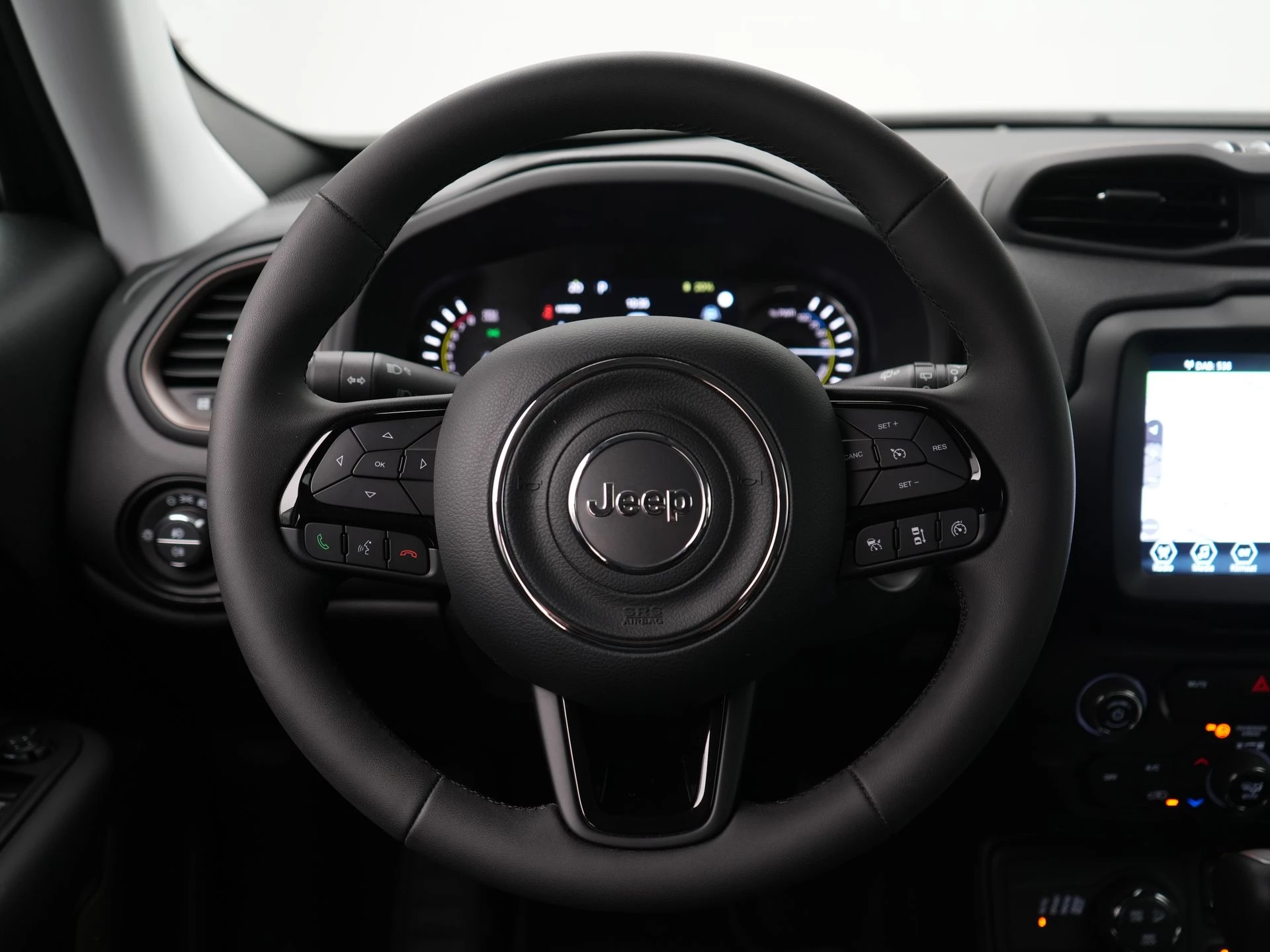 De achteruitrijcamera brengt precies in zicht wat zich achter je bevindt en toont een glashelder beeld op hoge resolutie. Een geluidssignaal waarschuwt hoeveel ruimte je nog hebt. Adaptive cruise control is een comfortabele en veilige optie. Het systeem reguleert de snelheid en houdt automatisch afstand tot jouw voorligger. Vergeten af te sluiten? Bandenspanning onvoldoende? De speciale app geeft je direct een seintje met behulp van Connected Services. In deze Renegade vind jij schakelaars op het stuur om het full map navigatiesysteem te bedienen en het audiosysteem met DAB-ontvangst. In een auto als deze kun je niet zonder automatische airconditioning, zodat de temperatuur altijd goed is. De Jeep is standaard voorzien van: regensensor, centrale deurvergrendeling met afstandsbediening, verstelbaar stuur en lederen versnellingspook.