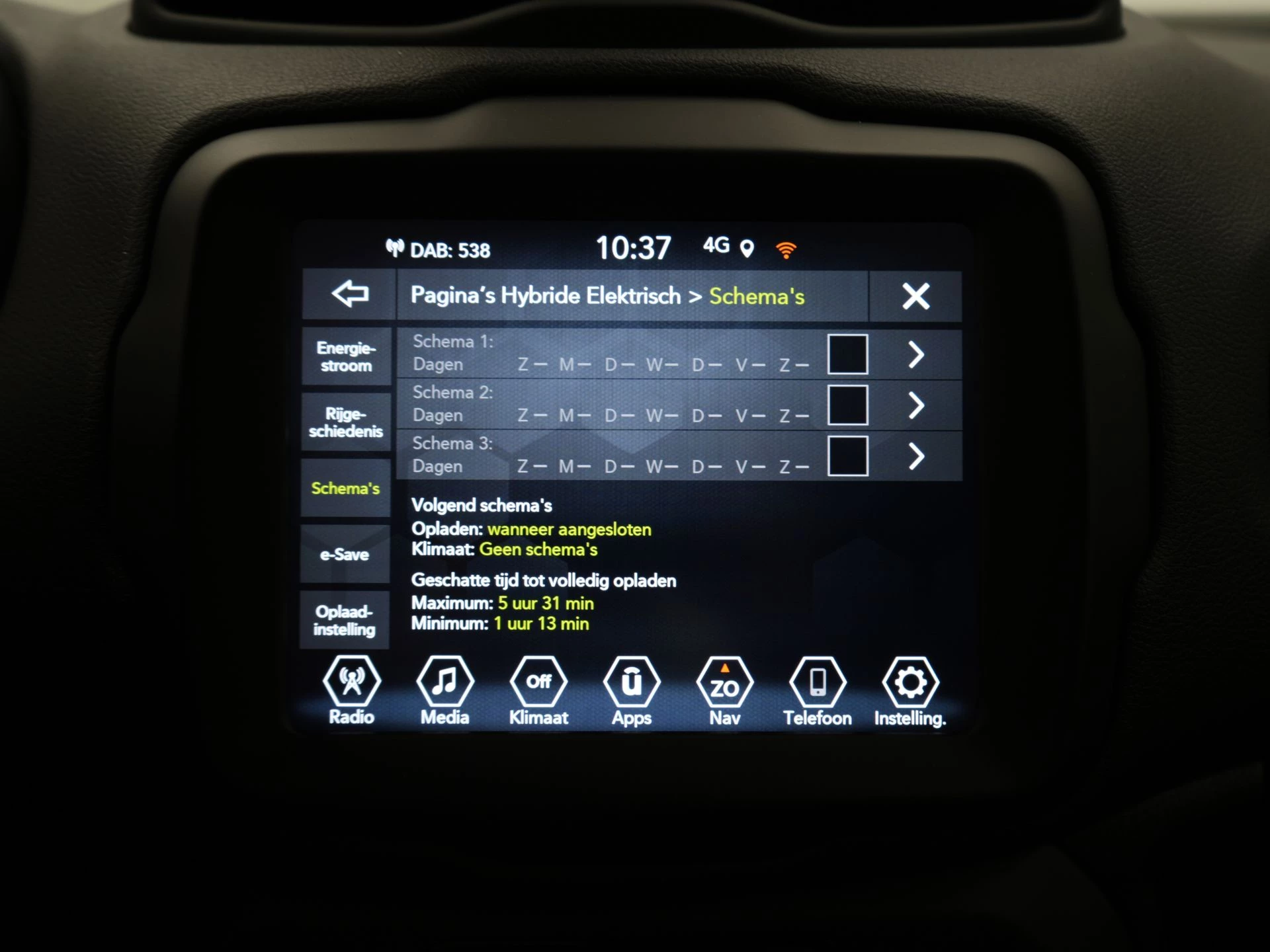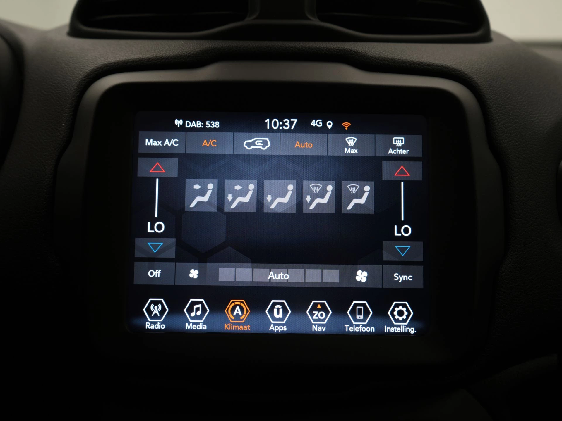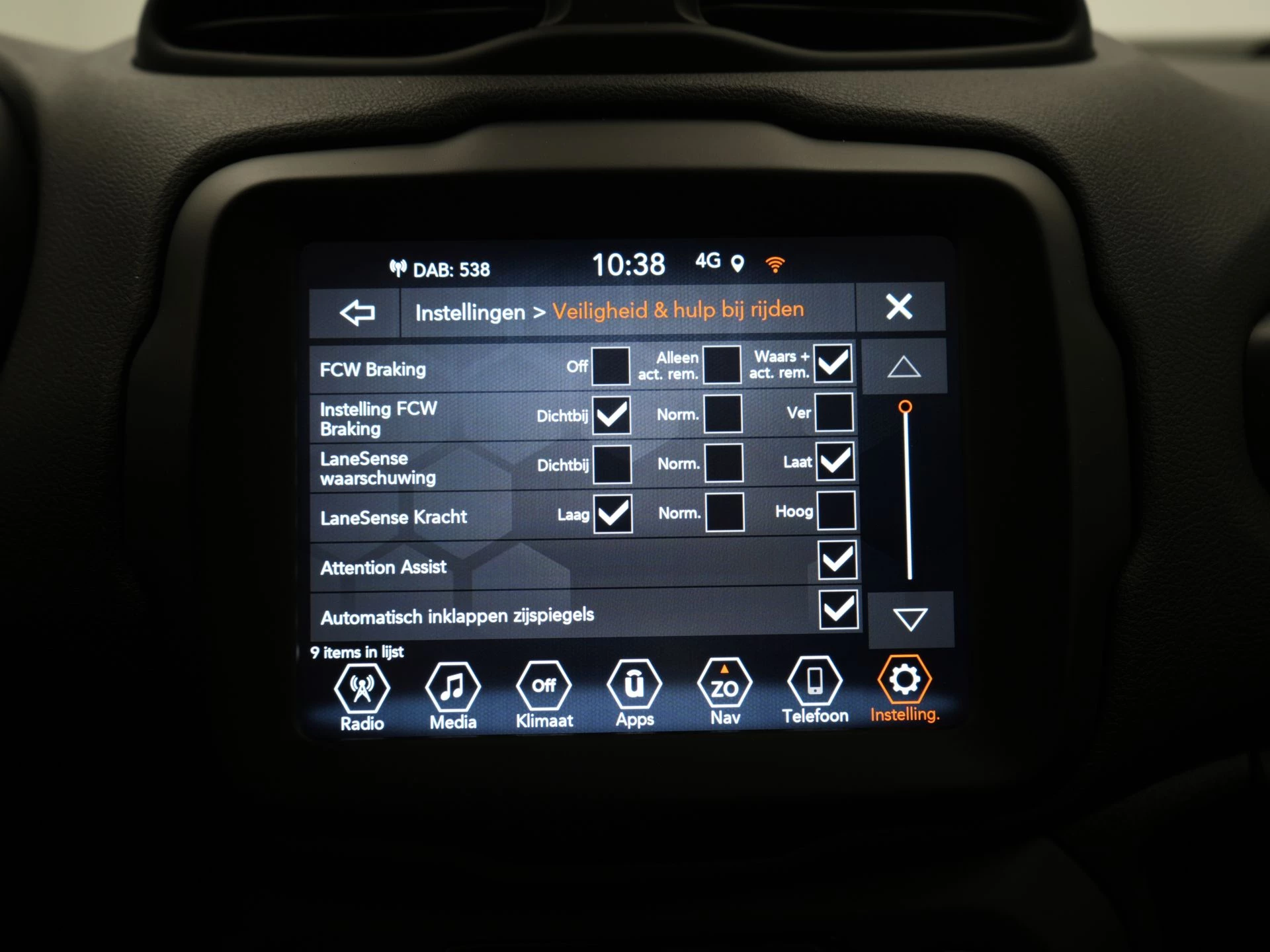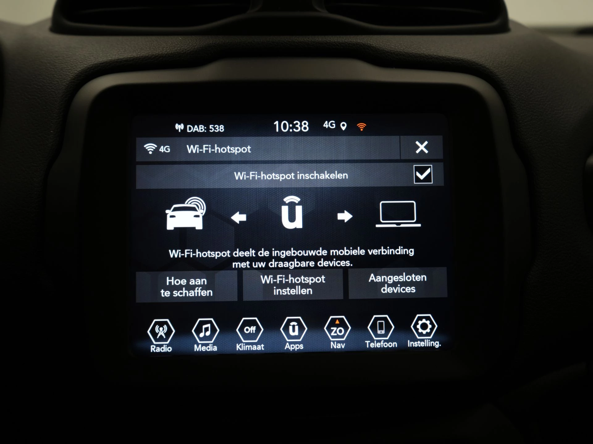 De achteruitrijcamera brengt precies in zicht wat zich achter je bevindt en toont een glashelder beeld op hoge resolutie. Een geluidssignaal waarschuwt hoeveel ruimte je nog hebt. Adaptive cruise control is een comfortabele en veilige optie. Het systeem reguleert de snelheid en houdt automatisch afstand tot jouw voorligger. Vergeten af te sluiten? Bandenspanning onvoldoende? De speciale app geeft je direct een seintje met behulp van Connected Services. In deze Renegade vind jij schakelaars op het stuur om het full map navigatiesysteem te bedienen en het audiosysteem met DAB-ontvangst. In een auto als deze kun je niet zonder automatische airconditioning, zodat de temperatuur altijd goed is. De Jeep is standaard voorzien van: regensensor, centrale deurvergrendeling met afstandsbediening, verstelbaar stuur en lederen versnellingspook.