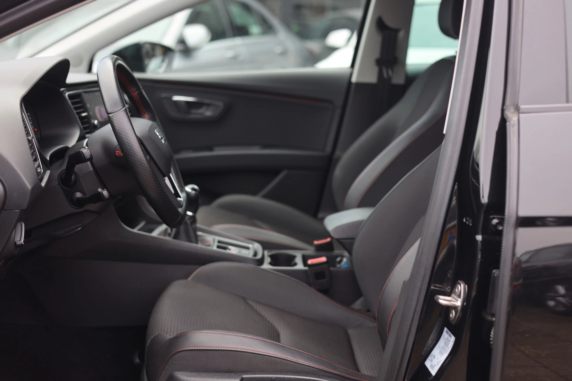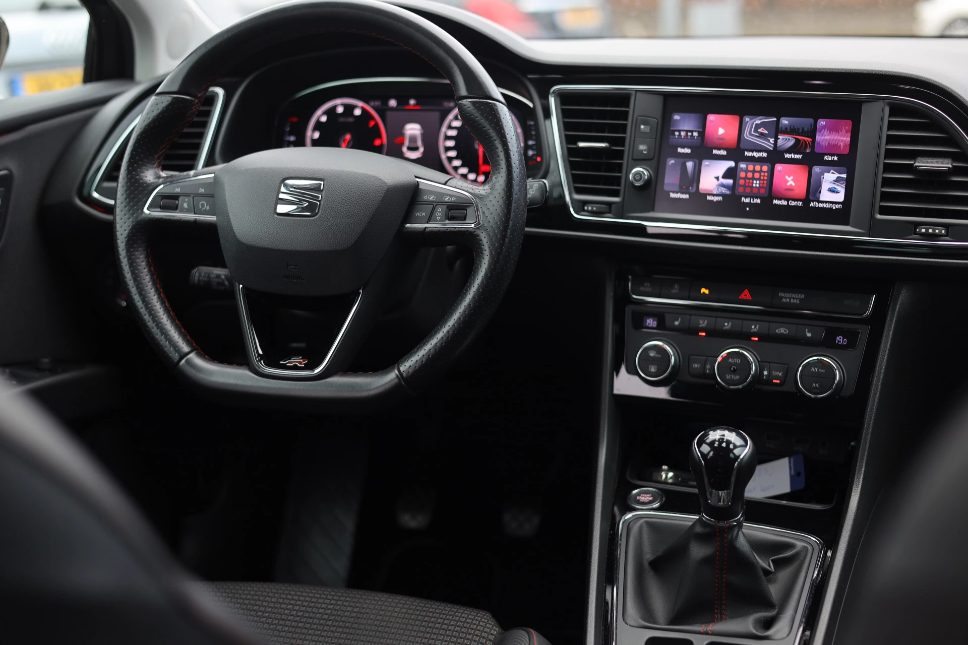 De nieuwste veiligheidssystemen komen in deze SEAT Leon samen. Dat de auto steeds meer taken van de bestuurder overneemt, merkt u bijvoorbeeld aan het systeem voor verkeersbord-detectie in deze auto. Indien u onbedoeld de rijstrook lijkt te verlaten, reageert het Lane-keeping systeem meteen en corrigeert. Forward collision warning waarschuwt voor een kop-staart botsing. Verder is deze auto uitgerust met dodehoekdetectie, hill hold functie, vermoeidheidsherkenning, autonoom remsysteem en bandenspanningcontrolesysteem.