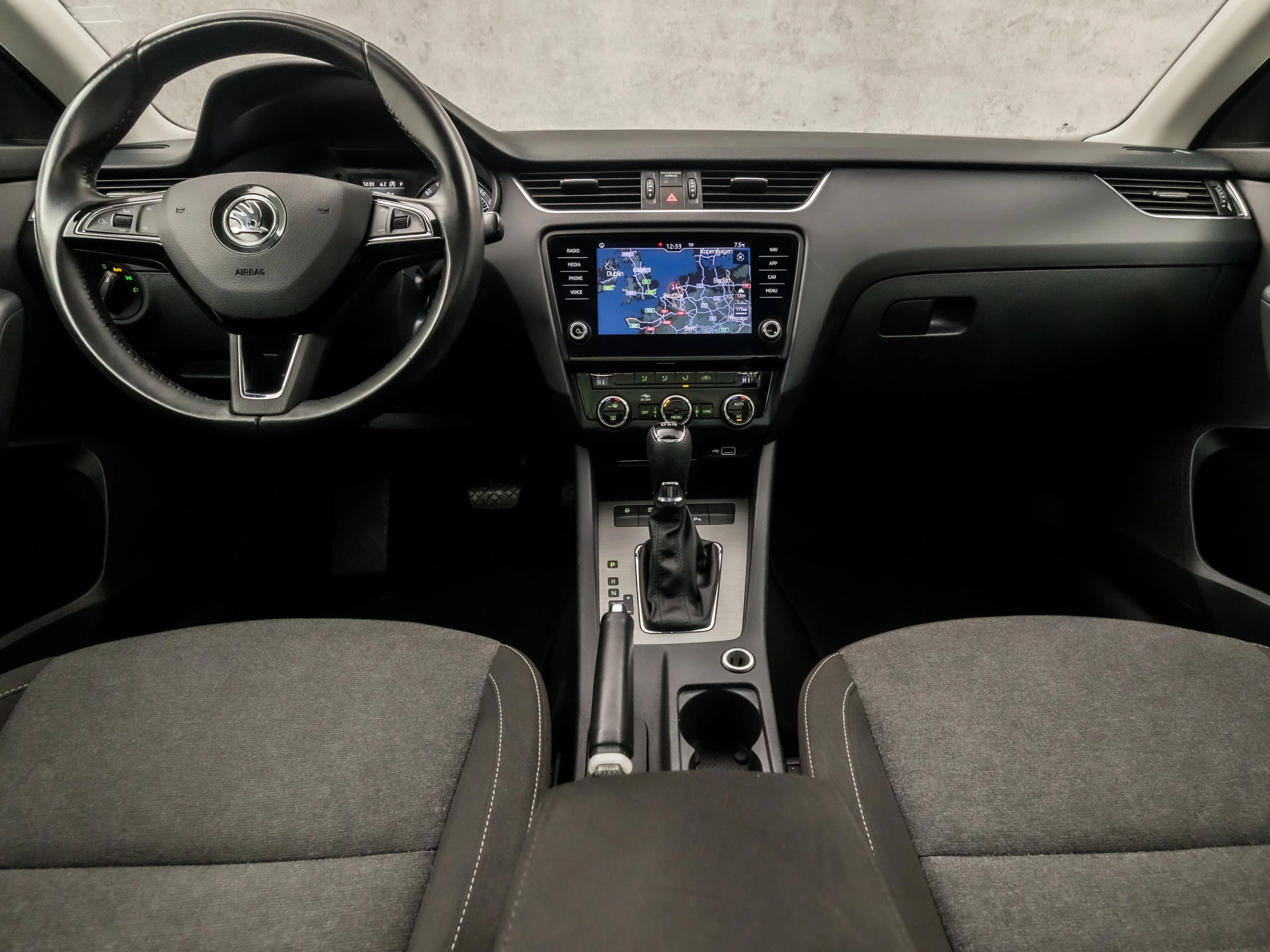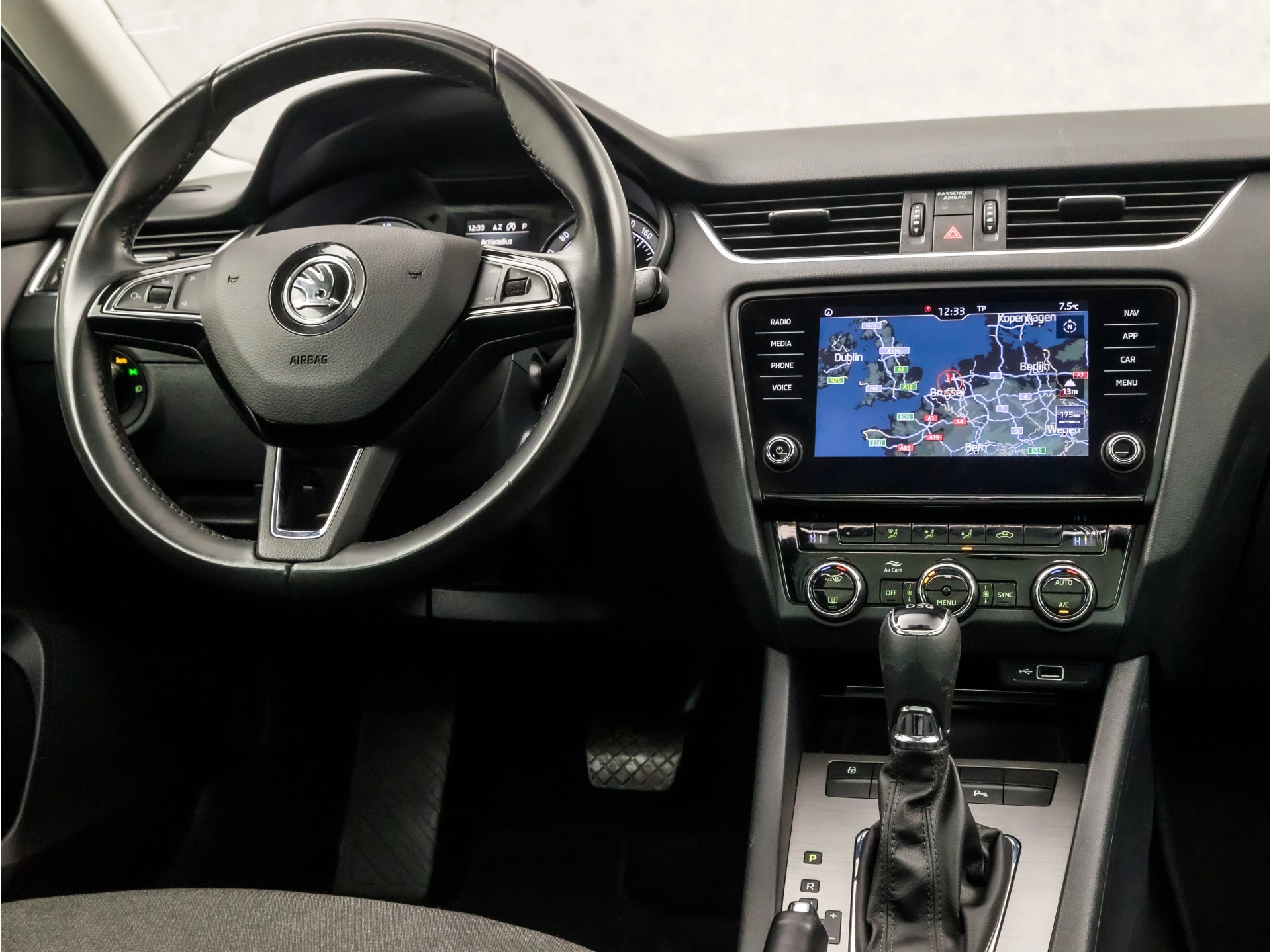 De achteruitrijcamera laat duidelijk zien hoeveel ruimte u nog heeft bij het inparkeren. De auto is voorzien van een trekhaak en is een uitstekende caravantrekker. Onderweg kunt u veilig genieten van het audio-installatiesysteem met DAB-radio en het navigatiesysteem met harde schijf. Want in deze ŠKODA bedient u ze vanaf het stuurwiel of met uw stem. Kabelkluwens en stekkerslingers van smartphones zijn hier niet aan de orde. De draadloze oplaadmogelijkheid voor telefoons maakt opladen strak, simpel en snel. De automatische airconditioning zorgt voor een prettige binnentemperatuur. Extra opties op deze auto zijn: WIFI-hotspot, regensensor, cruise control, sportstuurwiel, keyless entry en dvd-systeem.