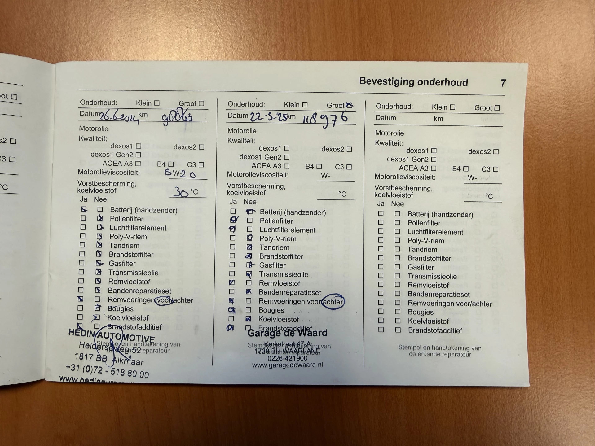 - Onderhoudsboekjes