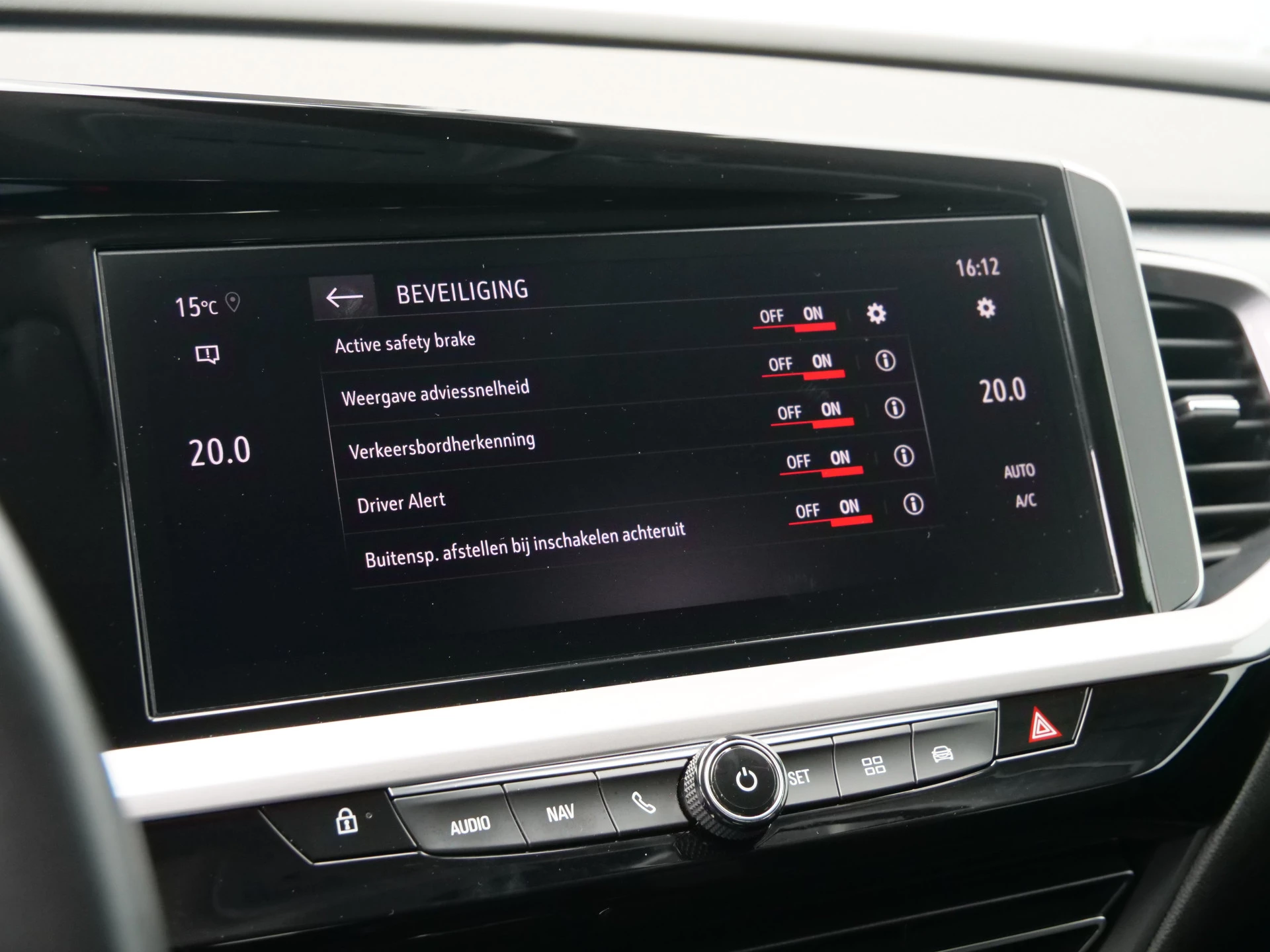 Zoals u mag verwachten van deze Opel Grandland is hij uitgerust met een reeks aan actieve veiligheidssystemen. Dat de auto steeds meer taken van de bestuurder overneemt, merkt u bijvoorbeeld aan het systeem voor verkeersbord-detectie in deze Opel. Met het Lane-keeping systeem gaat u nooit onbedoeld over de streep. Ook is deze auto uitgerust met een systeem dat u waarschuwt wanneer u achter het stuur in slaap dreigt te vallen. De veiligheid van deze auto wordt verder verhoogd door hill hold functie, autonoom remsysteem en bandenspanningcontrolesysteem.