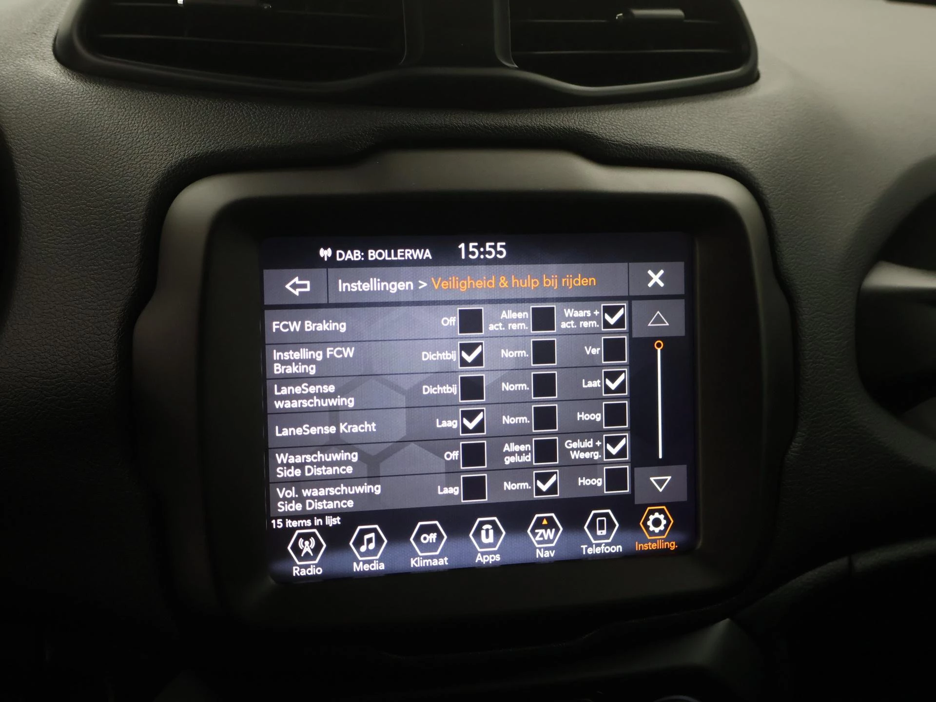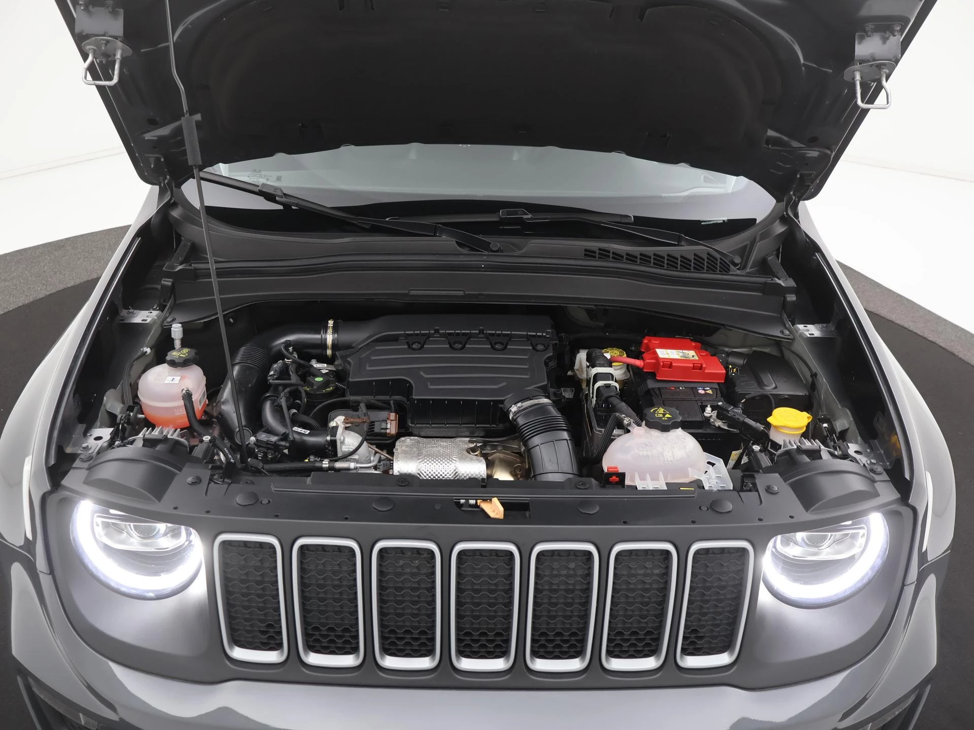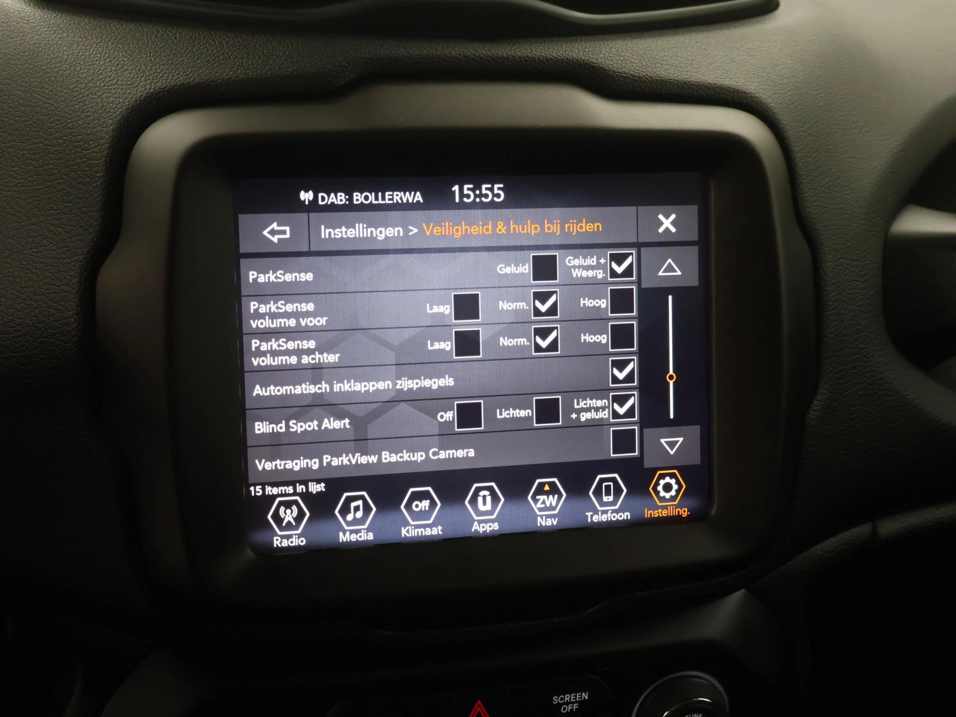 De achteruitrijcamera geeft u duidelijk zicht op de ruimte achter de auto. Adaptive cruise control houdt de ingestelde snelheid vast en houdt automatisch afstand tot uw voorligger. In deze Renegade vindt u schakelaars op het stuur om het full map navigatiesysteem te bedienen en het audiosysteem met DAB-ontvangst. Dankzij automatische airconditioning is het interieur behaaglijk warm of verfrissend koel. Het hoort bij een intelligente auto als deze dat hij zelf in staat is om zijn omgeving in de gaten te houden. Dat doet deze Jeep met een automatisch inschakelbare verlichting en een regensensor. De uitrusting van deze auto is met keyless entry, automatisch dimmende binnenspiegel, centrale deurvergrendeling met afstandsbediening en lederen versnellingspook behoorlijk compleet.