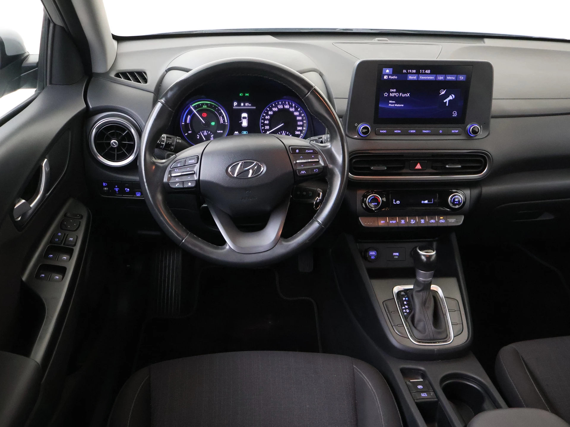 'Boem is ho'? Niet met deze achteruitrijcamera. U ziet achter net zo goed als voor en krijgt een duidelijk geluidssignaal! Gemakkelijk en veilig is de spraakbediening voor het audio-installatiesysteem en het full map navigatiesysteem. Daarbij kun jij deze ook bedienen met de knoppen op het stuur. De audio-kwaliteit is geweldig, dankzij de DAB-ontvangst. Het spreekt voor zich dat een auto als deze ook van automatische airconditioning is voorzien. Om de veiligheid onderweg te verhogen, heeft deze Hyundai zowel een automatisch inschakelbare verlichting als een regensensor aan boord, zodat hij zelf de verlichting en de ruitenwissers kan inschakelen. Met de keyless entry ontgrendelt deze Hyundai Kona zich automatisch als je het portier wilt openen. En dan is deze auto ook nog eens voorzien van schakelpaddles aan het stuur, automatisch dimmende binnenspiegel, centrale deurvergrendeling met afstandsbediening, bagage afdekhoes en boordcomputer.