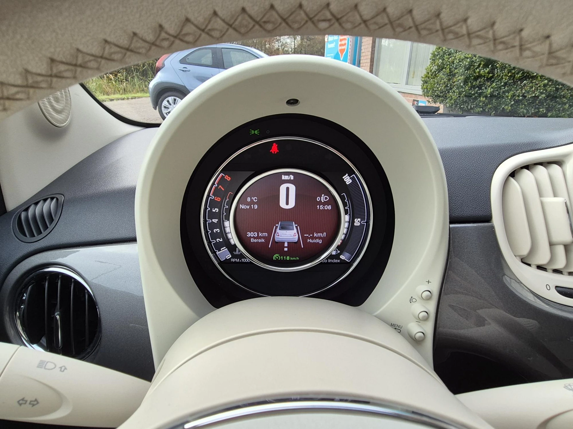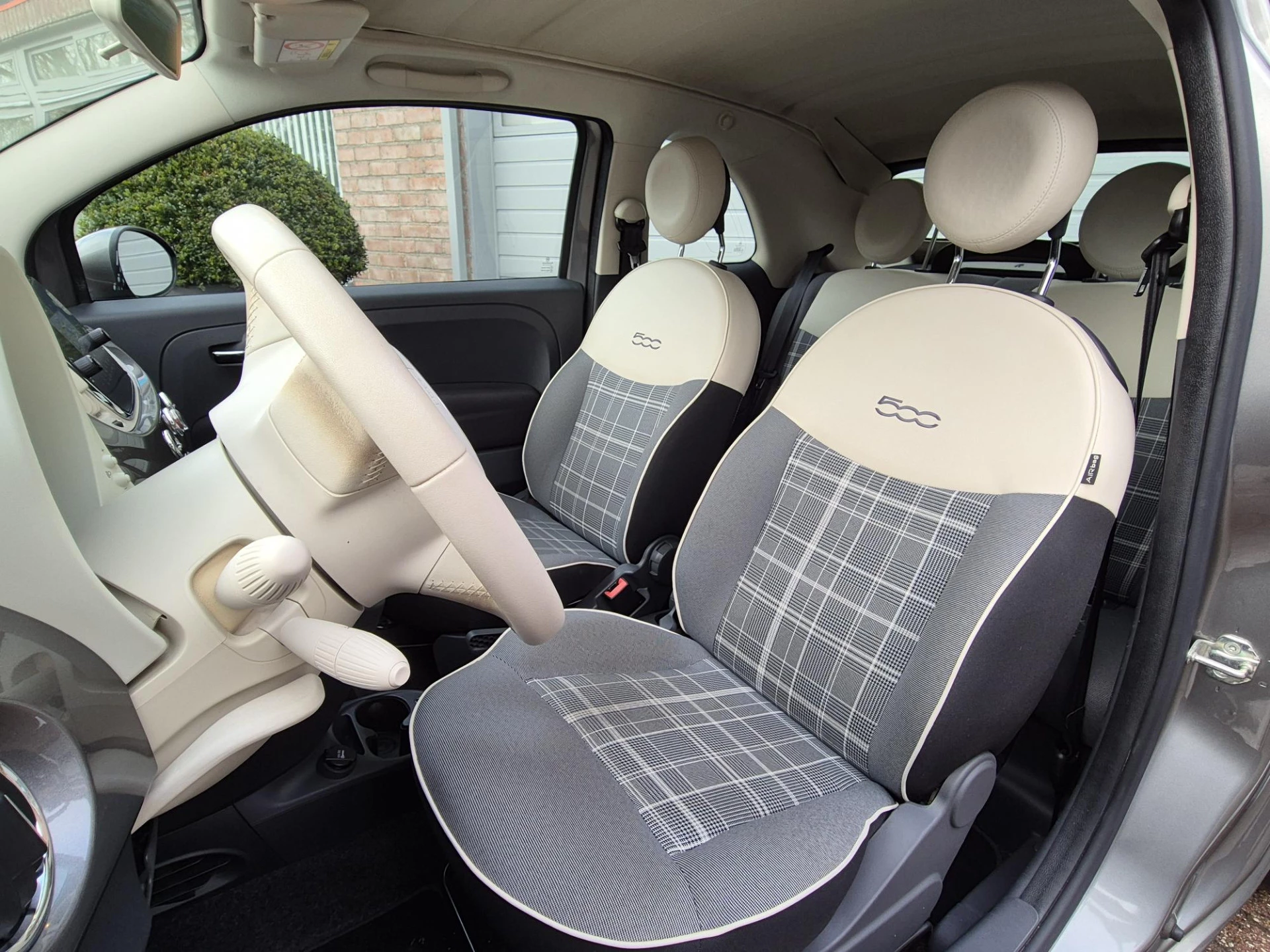 Omdat u nu eenmaal niet overal ogen heeft, is deze Fiat 500 C voorzien van een achteropkomend verkeer waarschuwing die registreert wanneer de afstand tot uw achterligger te krap is. Ogen op de weg, handen aan het stuur. De audiobediening op het stuur zorgt dat u probleemloos schakelt tussen zenders. Met deze auto bent u ontspannen onderweg dankzij de cruise control. Natuurlijk is er in deze auto airconditioning aanwezig. U bent in deze Fiat ook voorzien van lederen stuur en centrale deurvergrendeling met afstandsbediening.