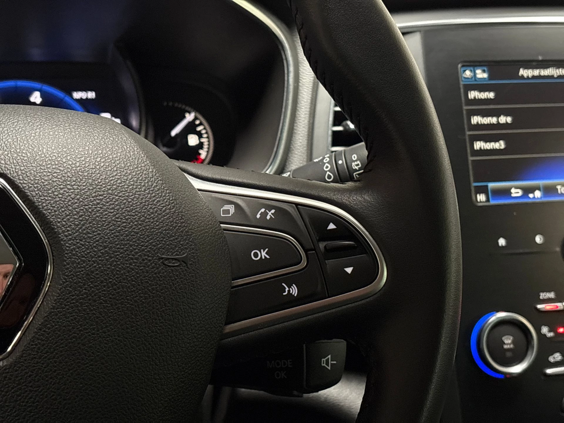 De auto is voorzien van een trekhaak en is een uitstekende caravantrekker. Een belangrijke veiligheidsvoorziening is de bediening van het audio-installatiesysteem en het navigatiesysteem via knoppen op het stuur. Dab-ontvangst geeft daarbij een kraakheldere ontvangst. Het comfort wordt verhoogd door de aanwezige automatische airconditioning. Liever gepiep dan gekraak? Dan zult u blij zijn met de aanwezige parkeersensoren! Achter het stuur van deze Renault bent u niet alleen. De auto kijkt als het ware met u mee tijdens de rit. De regensensor schakelt de ruitenwissers in als het nodig is en de automatisch inschakelbare verlichting doet de lichten voor u aan. Met WIFI-hotspot, cruise control, keyless entry, lederen stuur, isofix-aansluiting en centrale deurvergrendeling met afstandsbediening is deze Renault helemaal compleet.