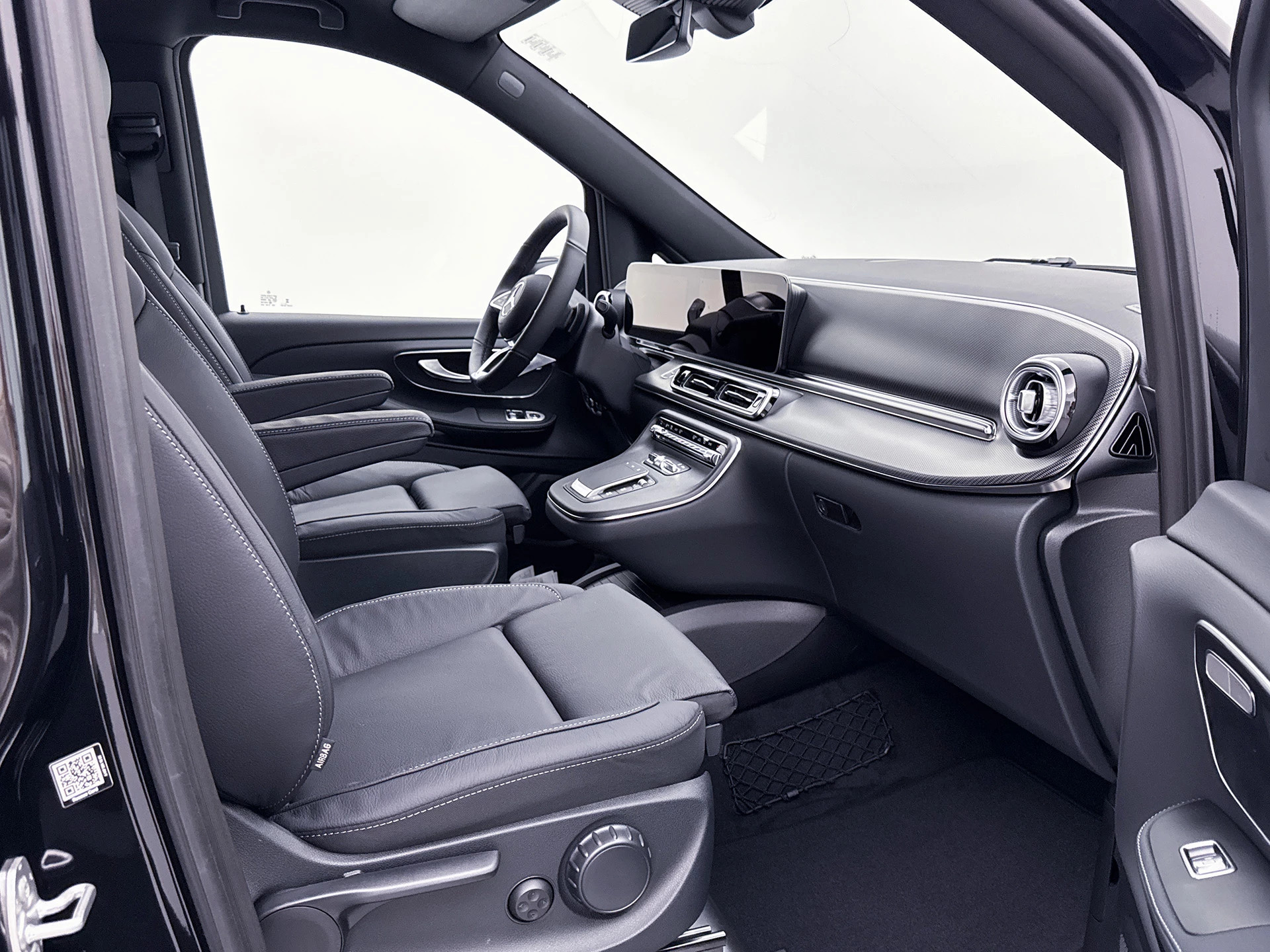 Het interieur is afgewerkt met luxe zwart leder en voorzien van alle gemakken voor zowel chauffeur als passagiers.