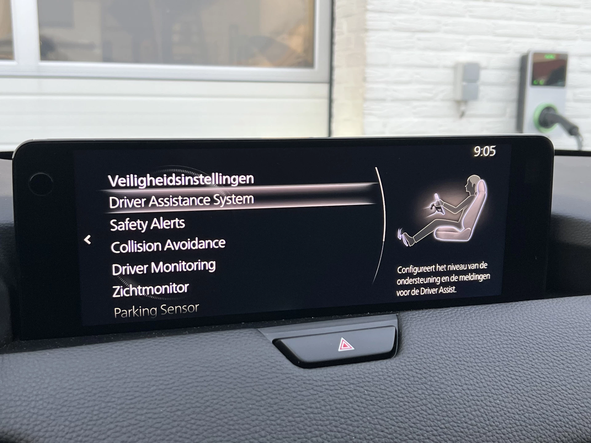 Tijdens de rit wordt u als bestuurder ondersteund door verschillende systemen die de weg en uw omgeving in de gaten houden. Uiteenlopende functies maakt de head-up display zichtbaar in de voorruit. Dat de auto steeds meer taken van de bestuurder overneemt, merkt u bijvoorbeeld aan het systeem voor verkeersbord-detectie in deze Mazda. Het Lane-keeping systeem zorgt dat u mooi binnen de lijntjes blijft. Ongemerkt buiten de rijstrook komen is er niet meer bij. Verder is deze auto uitgerust met dodehoekdetector detectiesysteem, forward collision warning system, hill hold functie, brake assist, vermoeidheidsherkenning en bandenspanningcontrolesysteem.