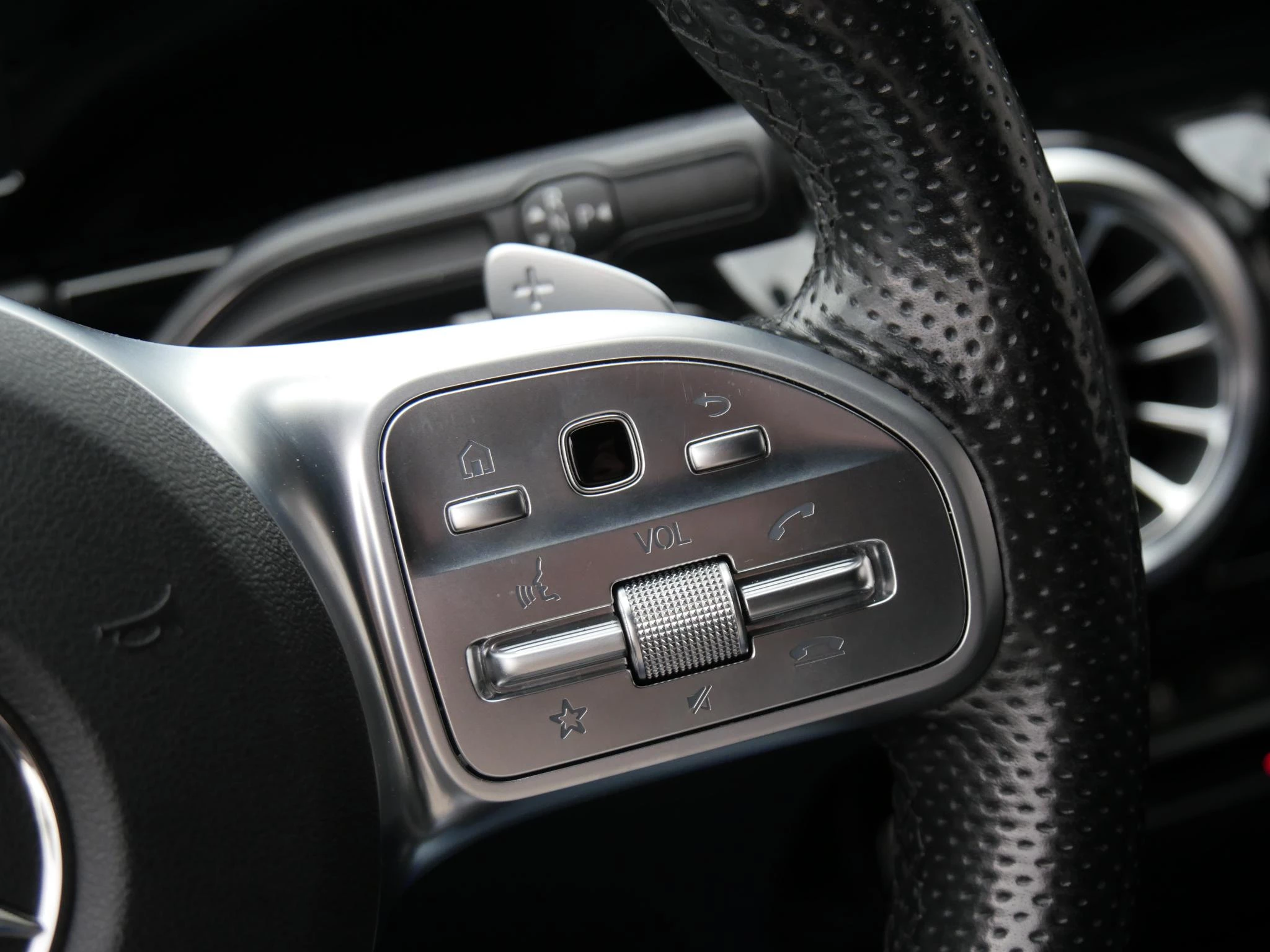 Multifunctioneel sportstuurwiel in nappa leder, onderaan afgevlakt en chromen afwerking (L5C)