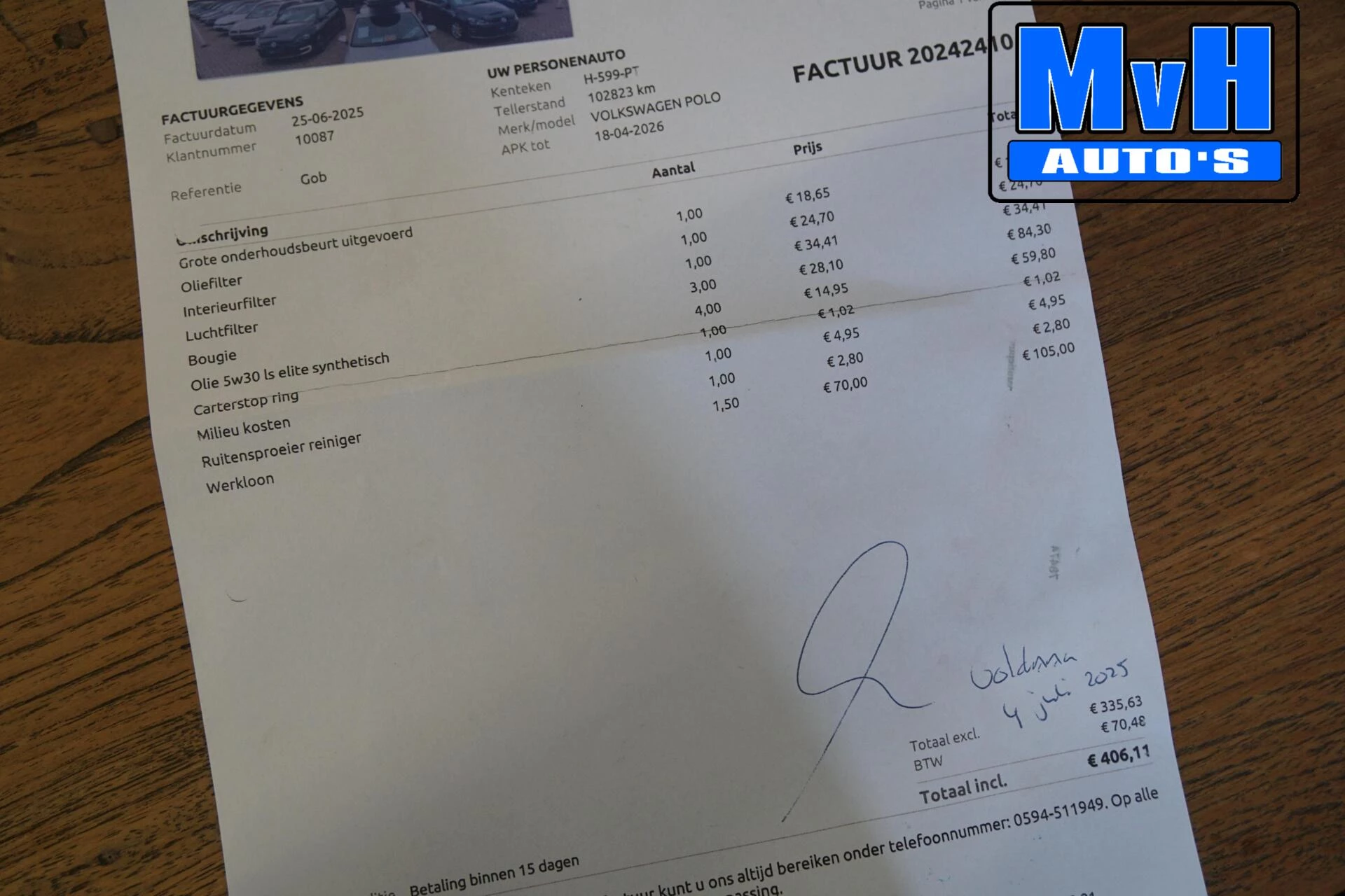 Laatste onderhoudsbeurt gehad in juni 2025 bij 102.823km