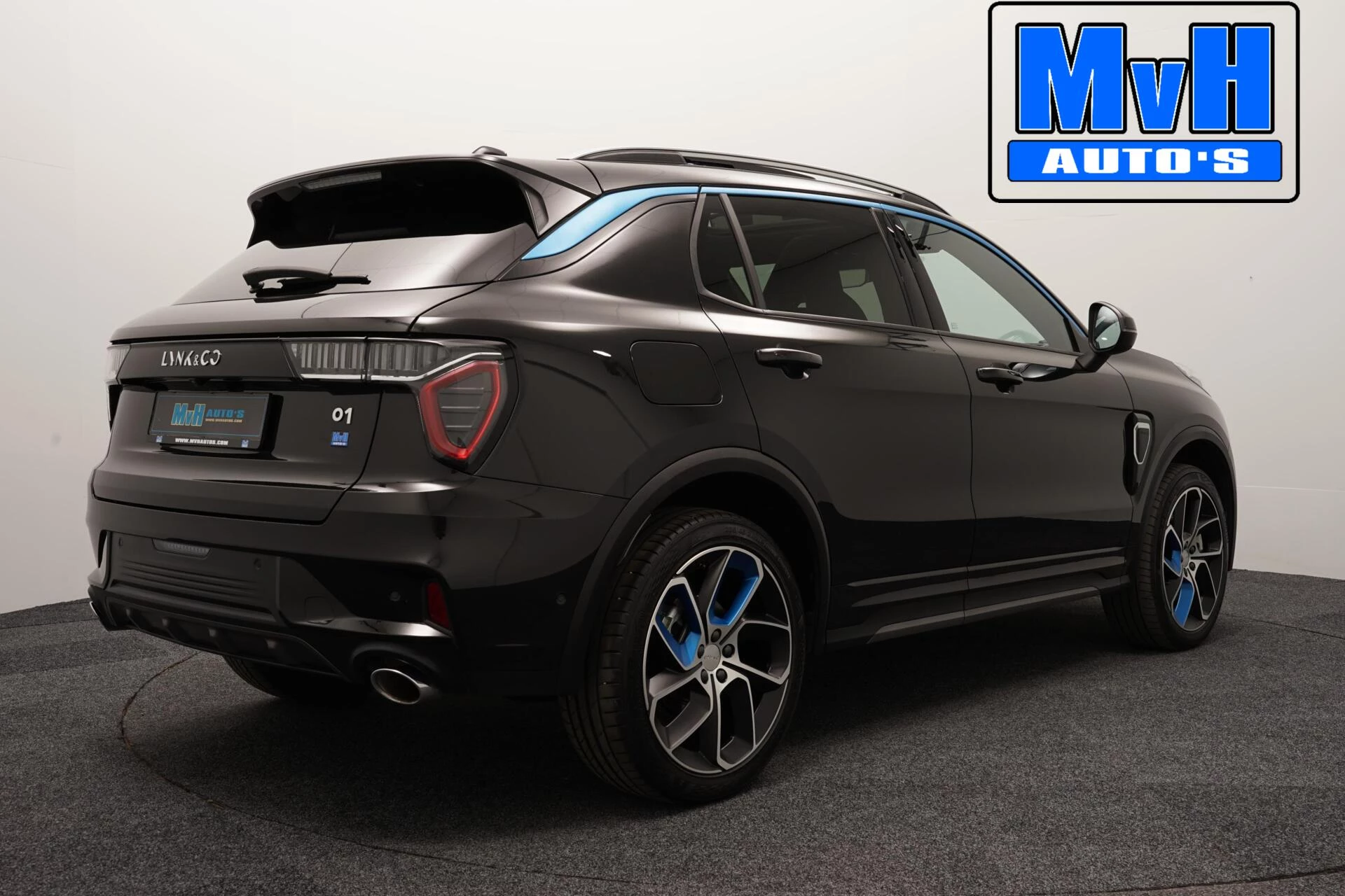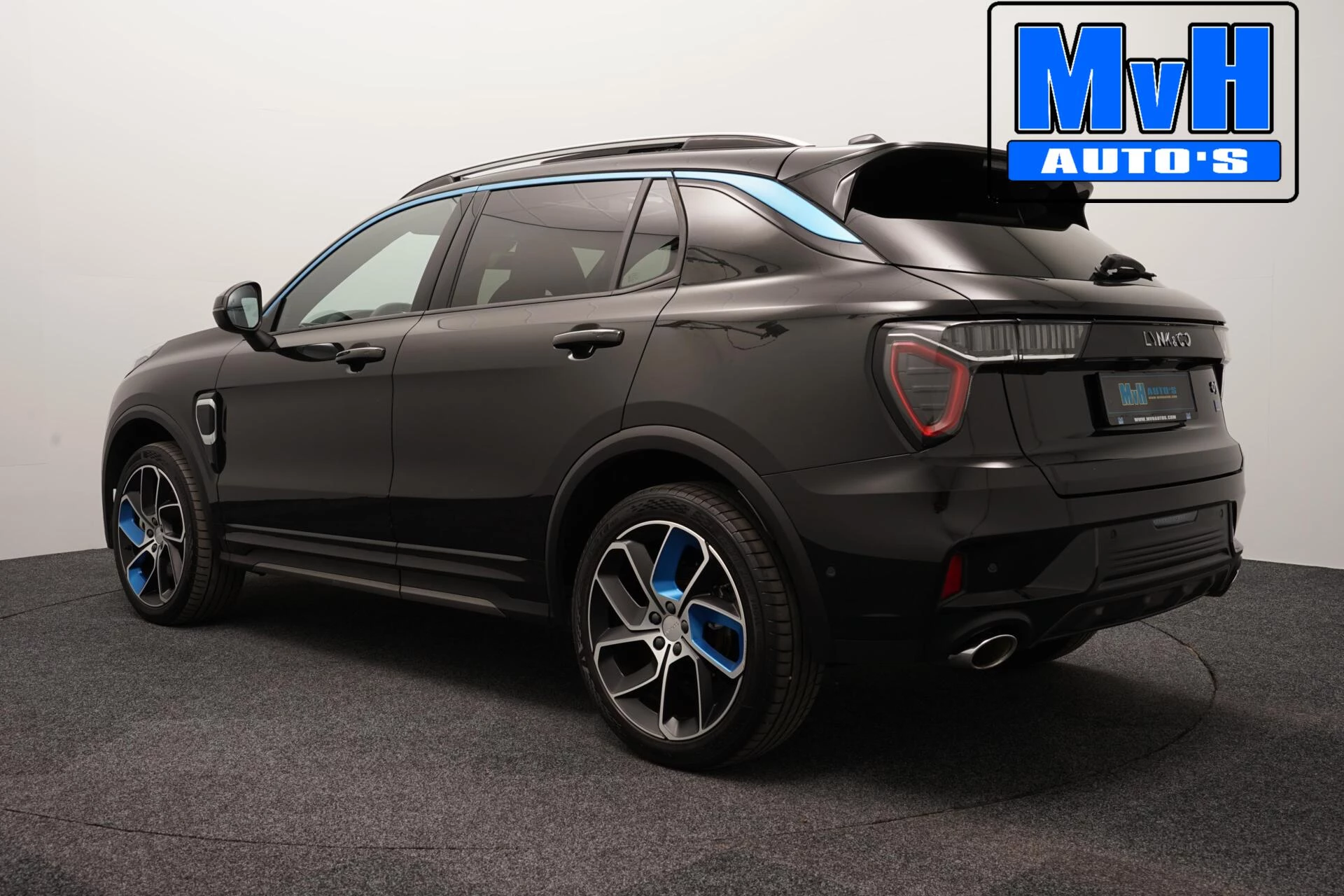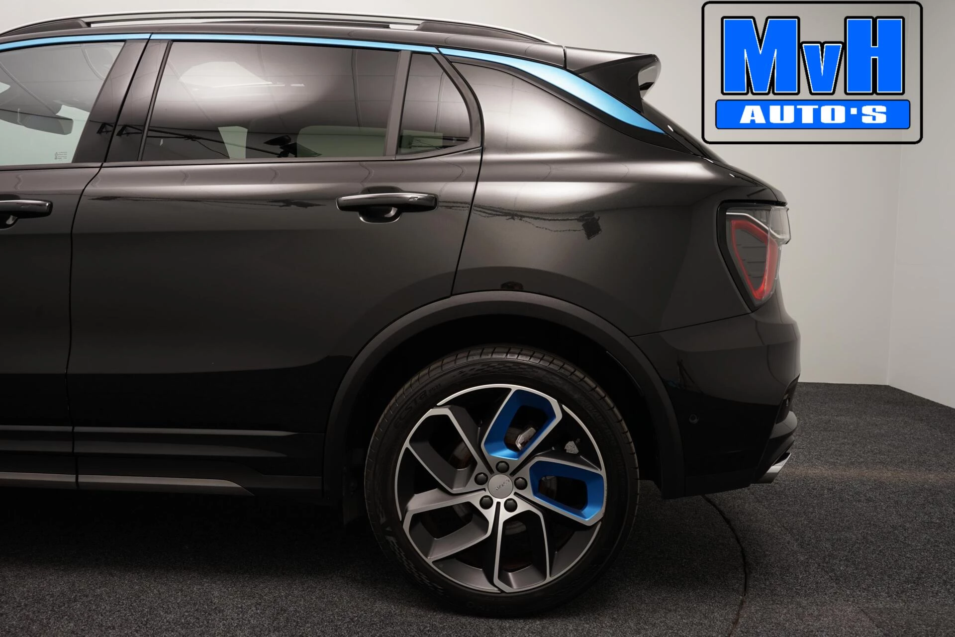 Zwart spuiten blauwe accenten velgen Lynk & Co - €449,-