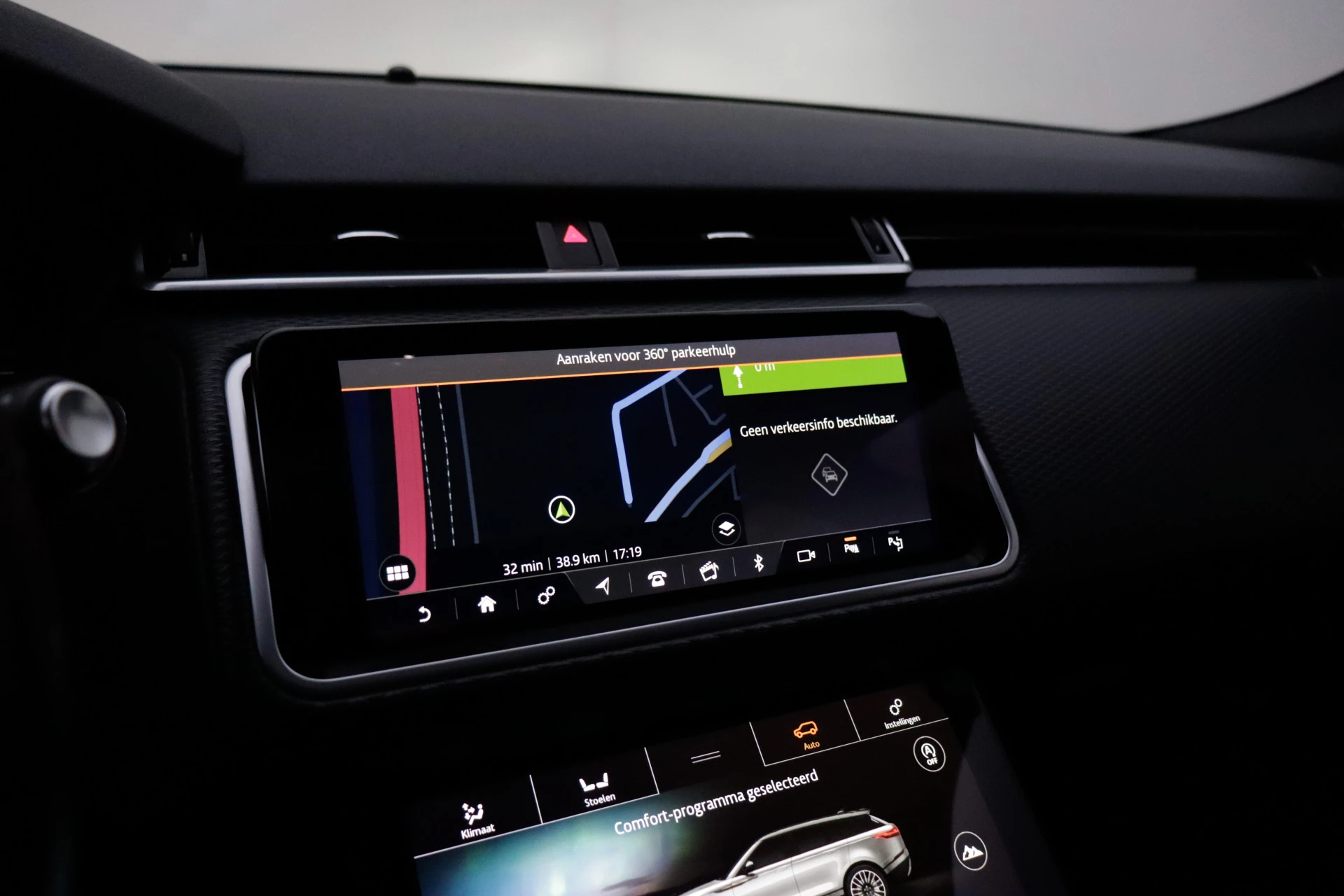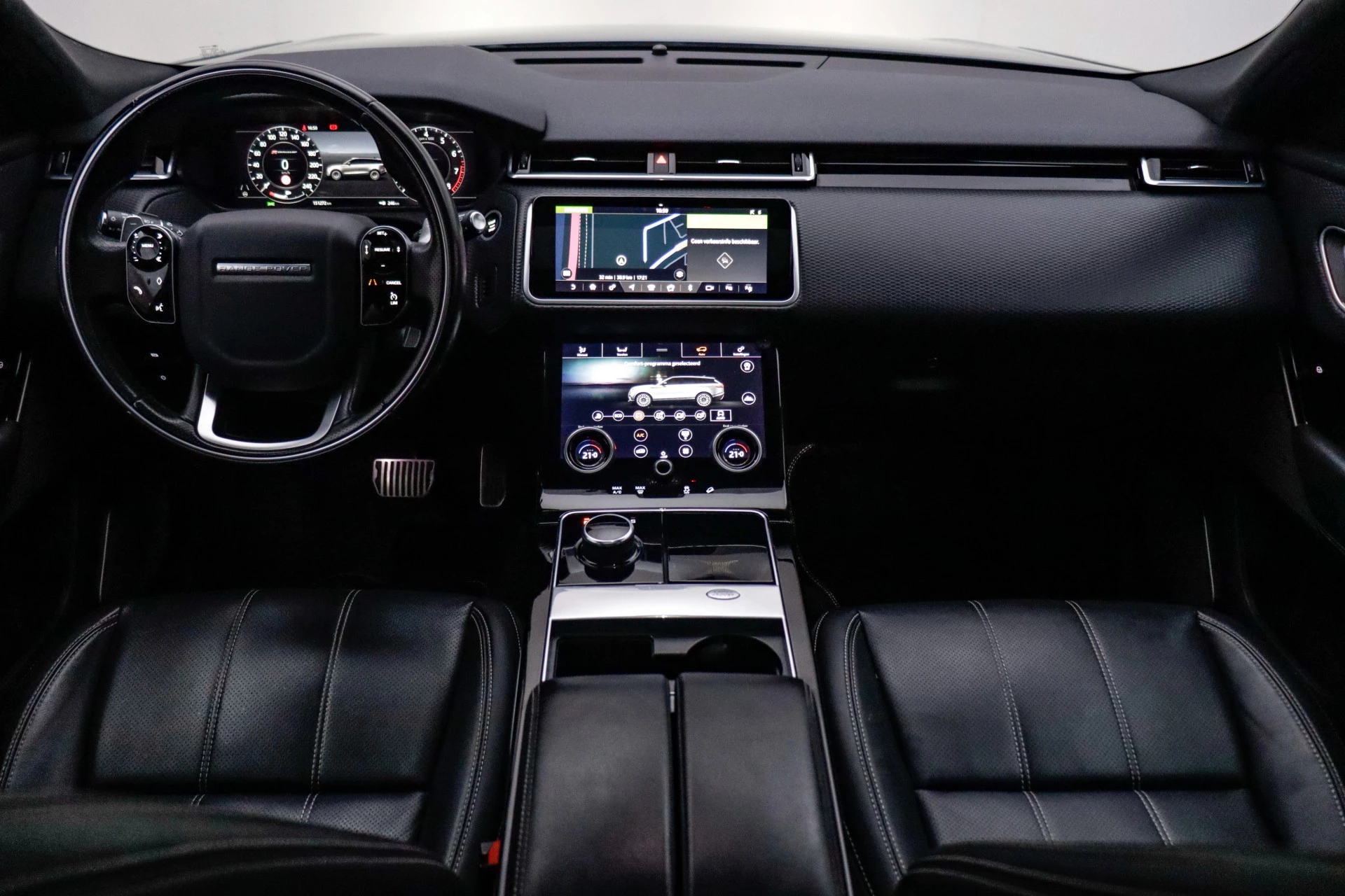 Zoals u mag verwachten van deze Land Rover Range Rover Velar is hij uitgerust met een reeks aan actieve veiligheidssystemen. Belangrijk voor uw veiligheid en die van uw passagiers is de verkeersbord-detectie in deze auto. Voorzien van het Lane-keeping systeem. Ofwel: blijf automatisch in je baan. Ook als uw aandacht even verslapt, blijft de forward collision warning bij de wekker. Dreigt er een botsing met een voor- of tegenligger, dan waarschuwt het systeem direct. In deze Land Rover vinden we verder een hill hold functie, vermoeidheidsherkenning, autonoom remsysteem en bandenspanningcontrolesysteem.