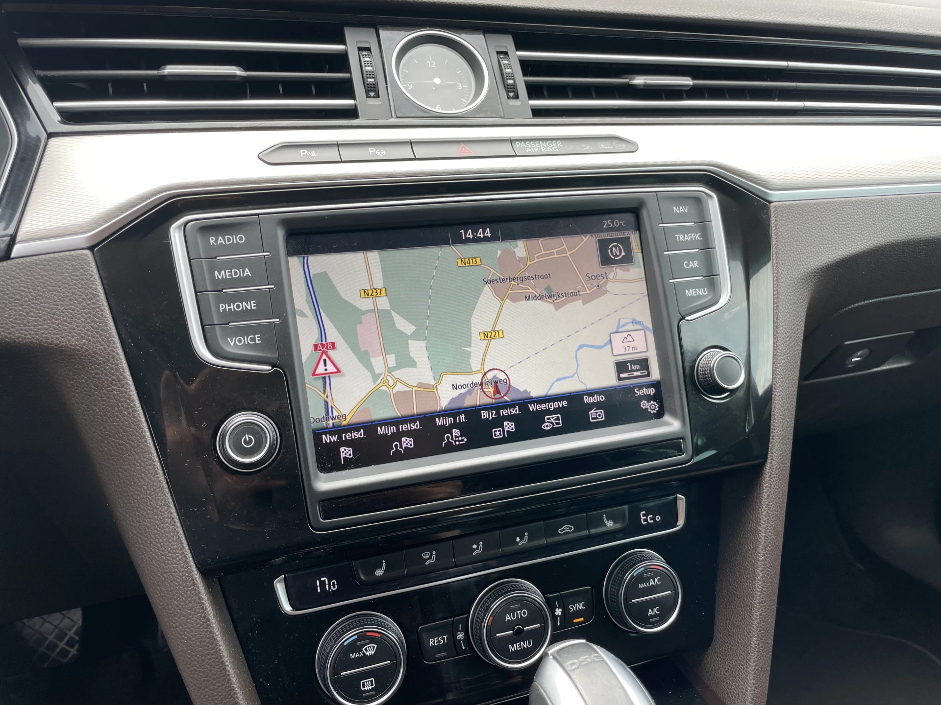Het audio-installatiesysteem is gekoppeld aan het navigatiesysteem en is bovendien voorzien van bluetooth. U verwacht natuurlijk automatische airconditioning in deze auto, en die is er dan ook. Een intelligente auto die meedenkt en meerijdt. Bij neerslag activeert de regen- en lichtsensor de ruitenwissers en de automatisch inschakelbare verlichting doet zelf de verlichting aan wanneer nodig. Onderweg zorgt de adaptive cruise control voor veilige afstand en snelheid en bij aankomst is inparkeren supersimpel met de parkeersensoren voor en achter. Heeft u de elektronische token op zak, dan herkent deze auto z′n baasje en de keyless start zorgt dat een druk op de startknop voldoende is. Geen sleutel meer nodig! Deze Volkswagen is voorzien van lederen versnellingspook, schakel flippers aan het stuur, automatisch dimmende buitenspiegels, boordcomputer, centrale deurvergrendeling met afstandsbediening en bagage afdekhoes.