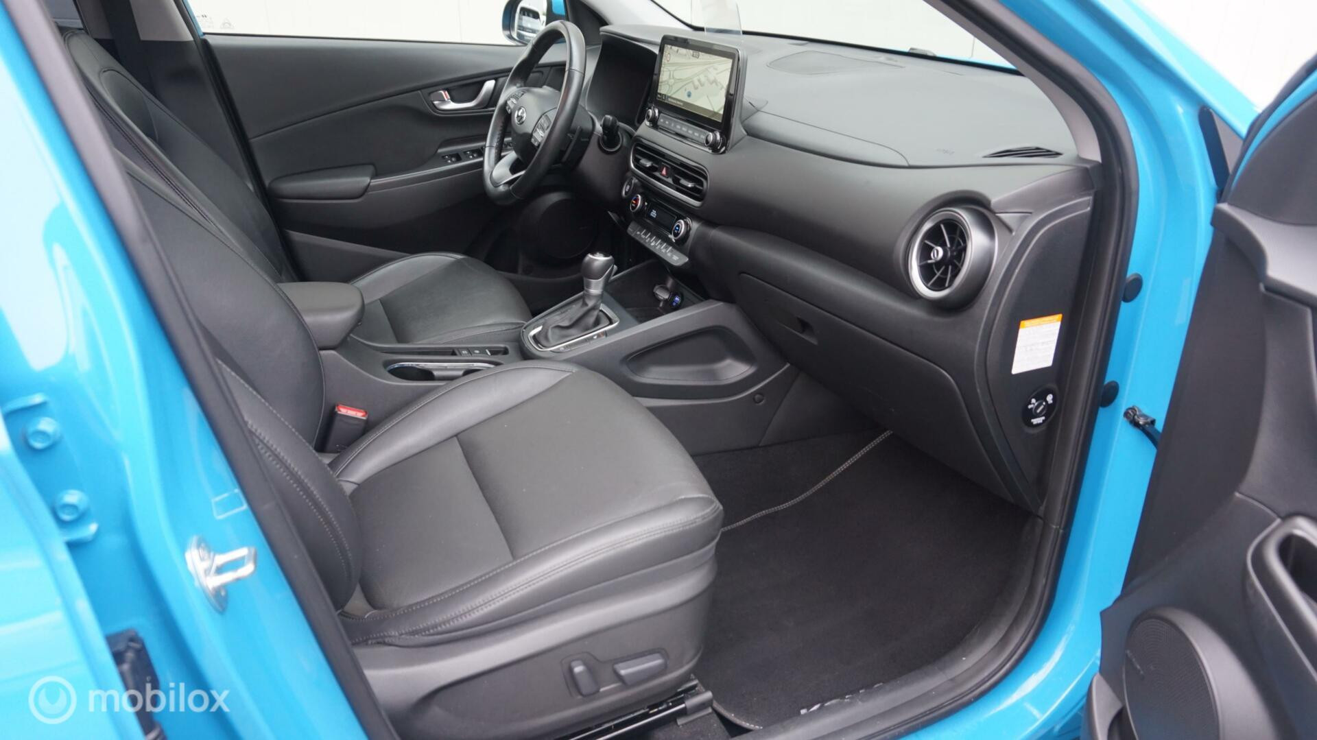 Het digitale dashboard is niet alleen enorm fraai en handig, maar draagt actief bij aan een veilige en slimme rit. De hoogwaardige achteruitrijcamera en het display met hoge resolutie zorgen dat helemaal niets u meer ontgaat van wat er achter de auto gebeurt. Adaptive cruise control is veilig en comfortabel. De snelheidsregelaar houdt automatisch afstand tot het voertuig dat voor u rijdt. Een veiligheidsverhogende optie is de ingebouwde spraakbediening. Terwijl u uw ogen op de weg houdt, bedient u de auto met uw stem. Deze Hyundai Kona is voorzien van remote services. Via uw smartphone bedient u diverse functies ook op afstand en krijgt u informatie over de status van uw auto. Ook is de Hyundai uitgerust met: full map navigatiesysteem, automatische airconditioning, sportstuur met schakelpaddels, draadloos opladen, DAB ontvangst en regensensor.