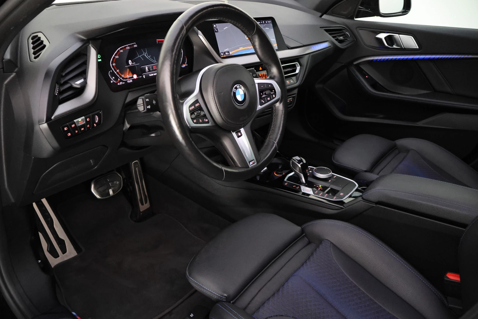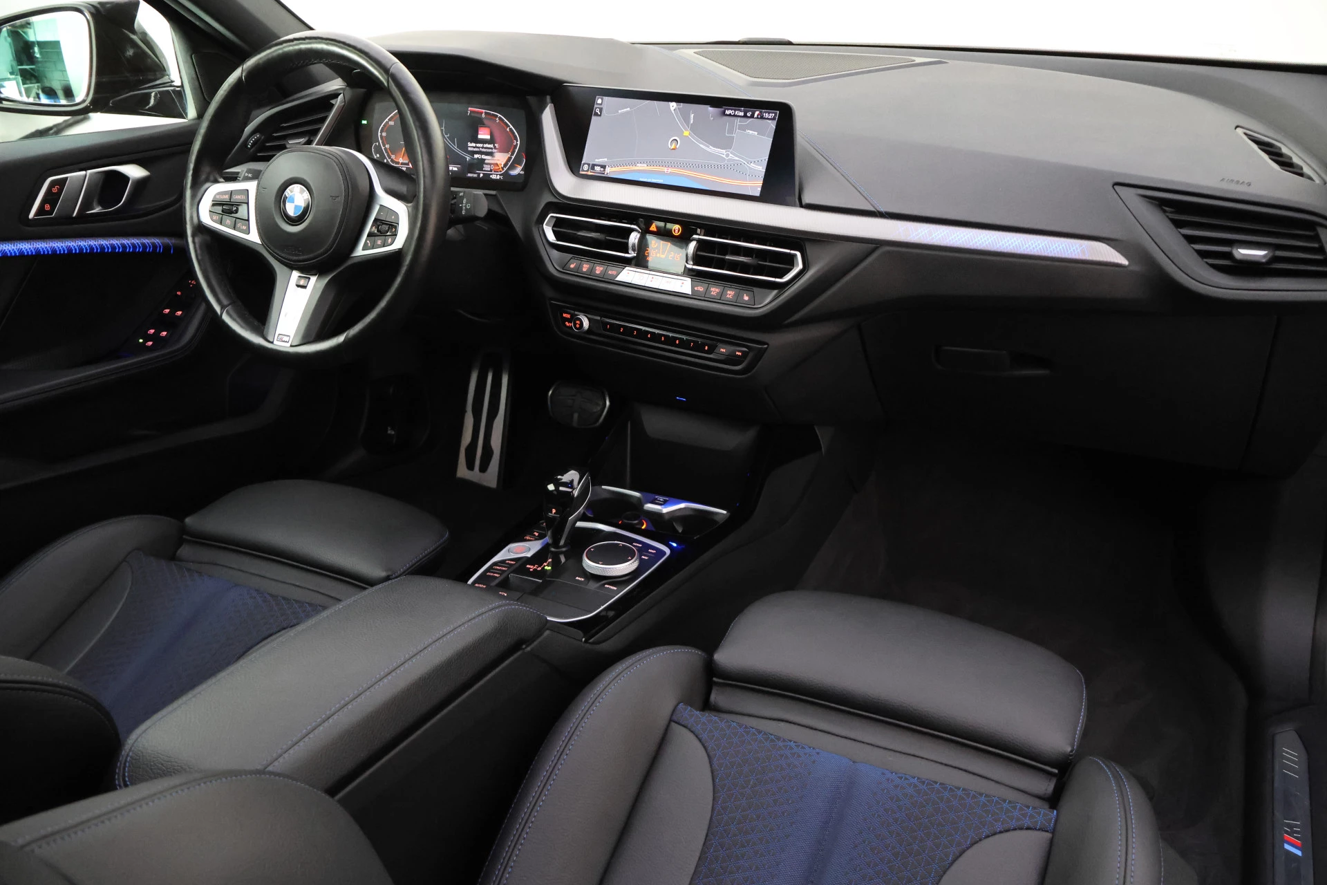 Met het digitale dashboard van deze auto is de aanpassing van uw cockpitinterface een fluitje van een cent. Spraakbediening verhoogt de veiligheid en het gebruiksgemak. De auto luistert naar uw instructies en volgt ze op. Deze BMW 1-serie is voorzien van remote services. Via uw smartphone bedient u diverse functies ook op afstand en krijgt u informatie over de status van uw auto. Zorgeloos en geconcentreerd rijden? Het full map navigatiesysteem wijst de weg! Aan boord van deze BMW 1-serie is een achteropkomend verkeer waarschuwing voor extra veiligheid. De uitrusting van deze BMW is met electronic climate control, DAB ontvangst, parkeersensoren achter, regensensor, cruise control en sportstuurwiel behoorlijk compleet.