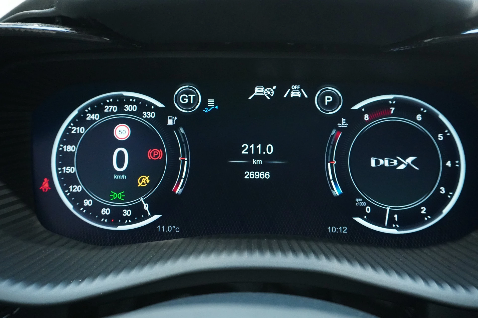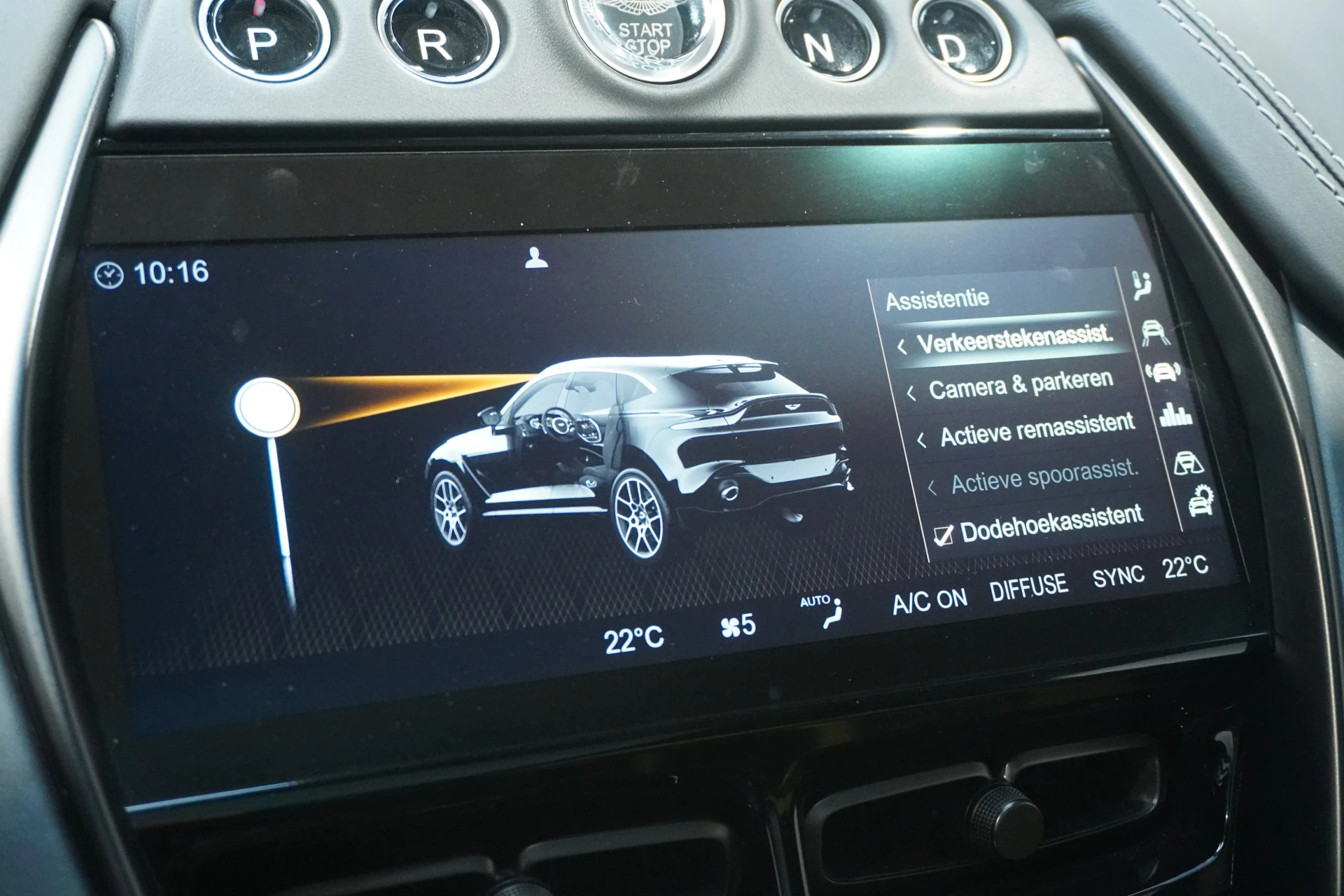 Geavanceerde veiligheidssystemen kijken tijdens elke rit met u mee en schatten continu de risico's in. In het instrumentarium ziet u tijdens de rit ook de belangrijkste verkeersborden aangegeven, die de auto automatisch voor u leest. Deze Aston Martin DBX is ook behulpzaam als het gaat om een rechte koers. Het Lane-keeping systeem signaleert en corrigeert als u onbedoeld de rijstrooklijnen dreigt te overschrijden. Het risico van een kop-staartbotsing wordt aanzienlijk verminderd door de forward collision warning. Met voorzieningen als dodehoekdetectie, hill hold functie, brake assist en bandenspanningcontrolesysteem, bent u altijd veilig onderweg.
