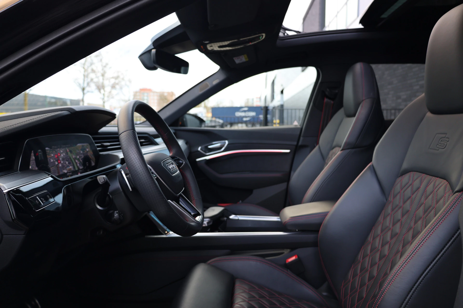 Audi heeft de auto opnieuw uitgevonden. De volledig elektrische Audi Q8 e-tron is duurzaam, maar biedt tegelijk veel rijcomfort en geweldige prestaties. Dit dealeronderhouden exemplaar is van het bouwjaar 2024, er staat 26870 kilometer op de teller. Nooit meer naar de pomp! De elektromotor opladen en rijden maar! Het S-Line styling pakket maakt direct duidelijk waar deze Audi voor staat: onversneden sportiviteit en rijdynamiek. Deze dealeronderhouden auto is van de eerste eigenaar. Een krachtige motor geeft deze auto zijn sportieve prestaties. We nemen u in gedachten even mee. Stop uw bagage moeiteloos achterin dankzij de elektrisch bediende achterklep, neem plaats achter het stuur en zie meteen het luxe lederen interieur. Even het elektrisch bediende glazen panorama dak open en rijden maar! Winterse omstandigheden? Geniet dan van het comfort van de stoelverwarming! De kwaliteit van de matrix LED-verlichting geeft het gevoel dat u bij daglicht rijdt. Ook 20 inch lichtmetalen velgen, sportonderstel, adaptief dempingsysteem, warmtewerend glas, zwarte hemelbekleding en in delen neerklapbare achterbank horen tot de voorzieningen op deze auto.