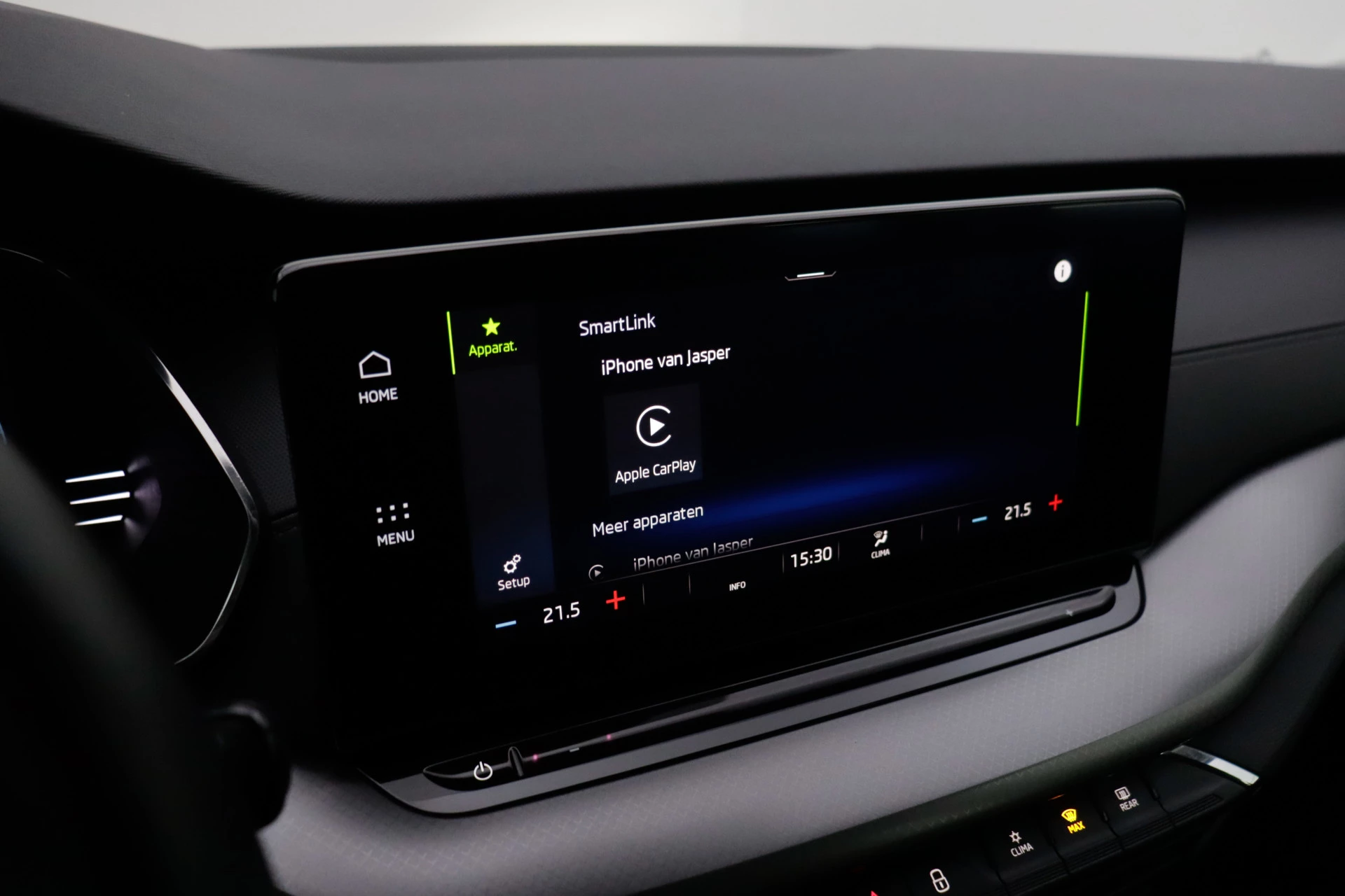 Snelheid, omgevingsinfo, navigatie en communicatie... Het digitale dashboard geeft alles realtime weer. Als u de adaptive cruise control inschakelt, regelt de auto zelf de snelheid en de afstand tot de auto voor u. Ingericht op Connected Services, voor een nog veiligere en comfortabelere rit. In deze auto beschikt u natuurlijk over een full map navigatiesysteem. Het audiosysteem met DAB-radio biedt glasheldere geluidskwaliteit. U bedient dit veilig, via het stuurwiel of met spraakbediening. Bij de luxe van deze auto hoort ook automatische airconditioning. U bent in deze ŠKODA ook voorzien van parkeersensoren achter, regensensor, automatisch dimmende buitenspiegels, lederen stuur, centrale deurvergrendeling met afstandsbediening en lederen versnellingspook.