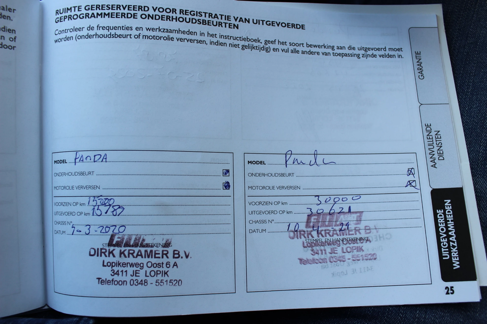 Onderhoudsbeurten gehad bij: