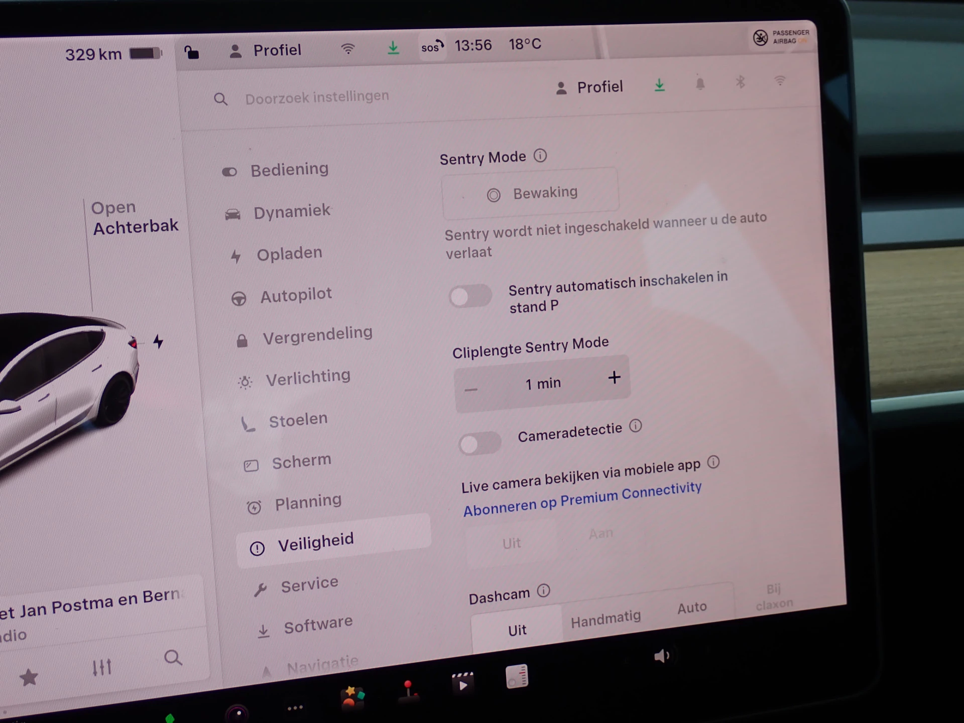 Alarm, Dashcam en Beveiligingsmodus