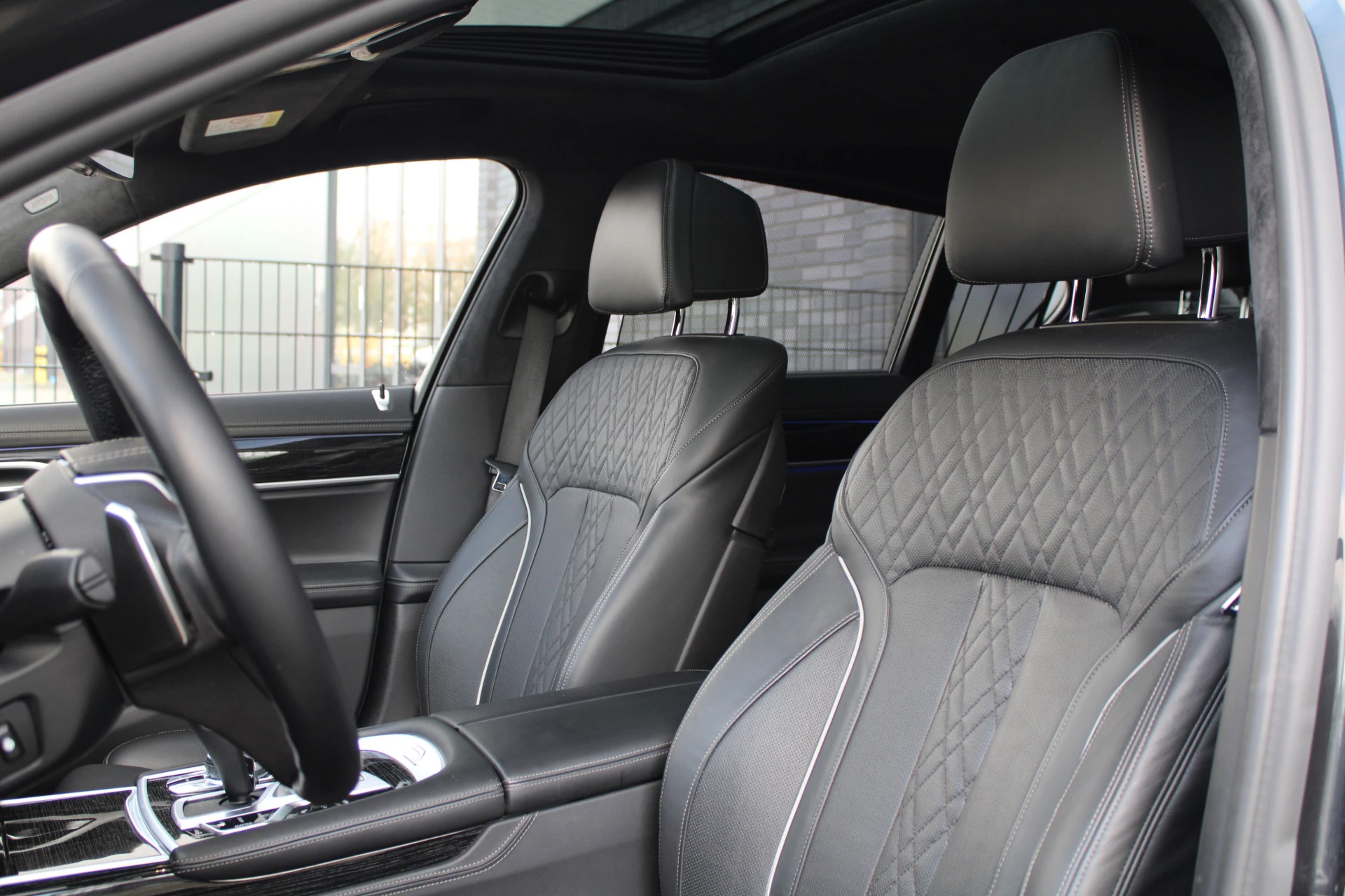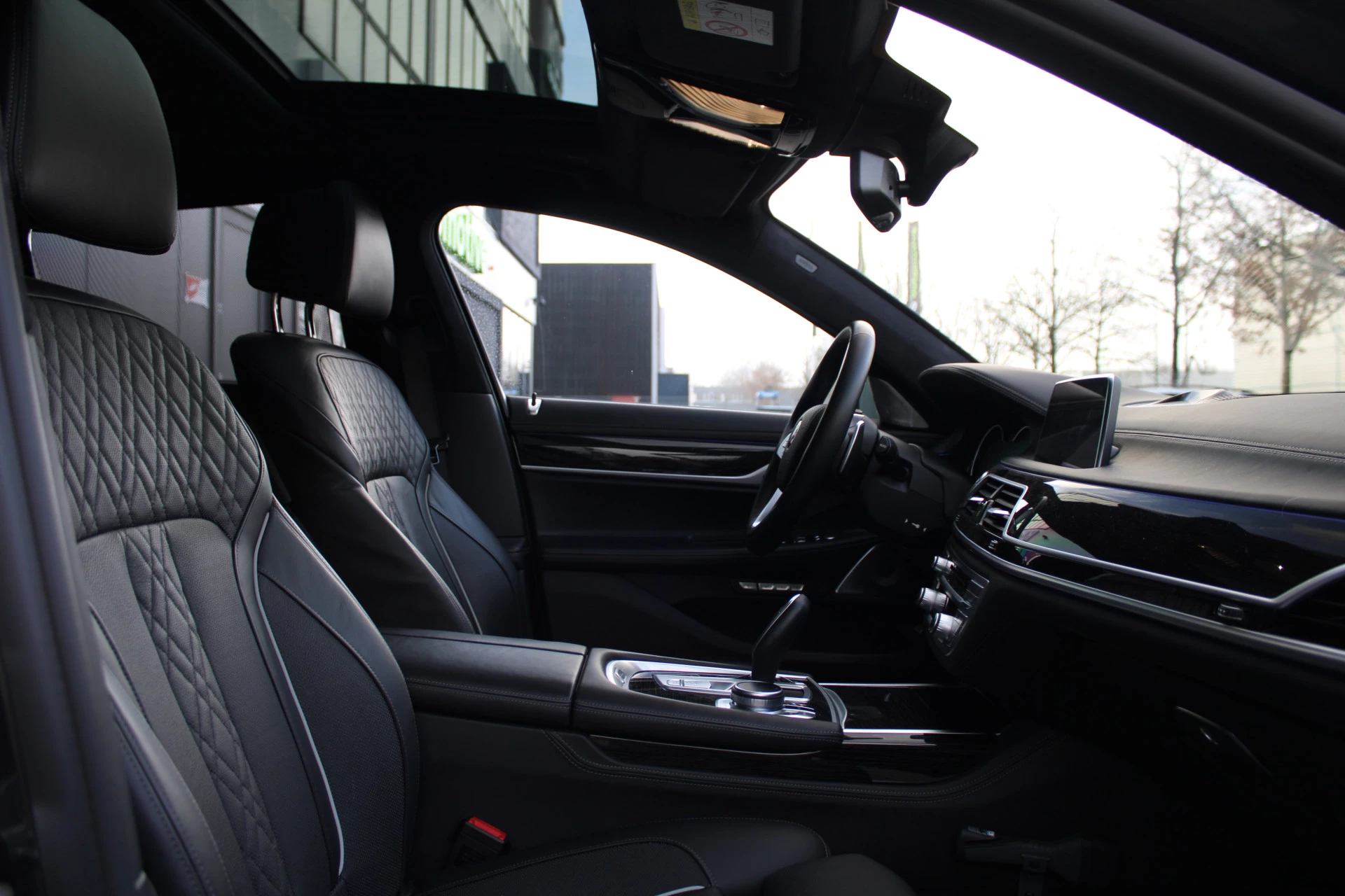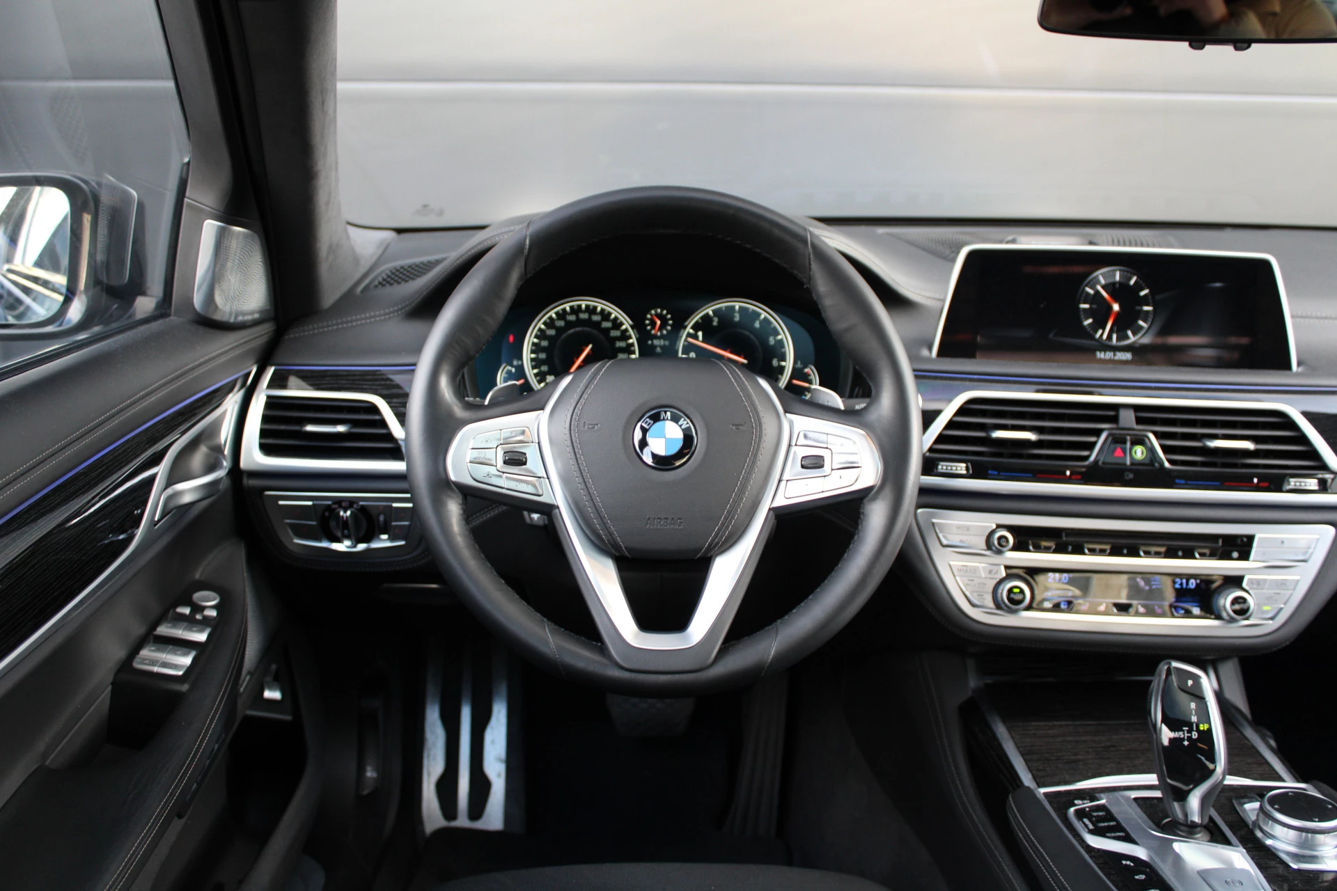 Zoals u mag verwachten van deze BMW 7-serie is hij uitgerust met een reeks aan actieve veiligheidssystemen. In het instrumentarium laat de verkeersborddetectie de actuele verkeersborden zien. Het Lane-keeping systeem registreert permanent of u binnen de lijnen van de rijstrook blijft; dwaalt u onbedoeld af, dan waarschuwt het systeem en corrigeert de koers. Bovenop deze veiligheidsfeatures heeft deze BMW bovendien head-up display, dodehoekdetectie, hill hold functie en bandenspanningcontrolesysteem.