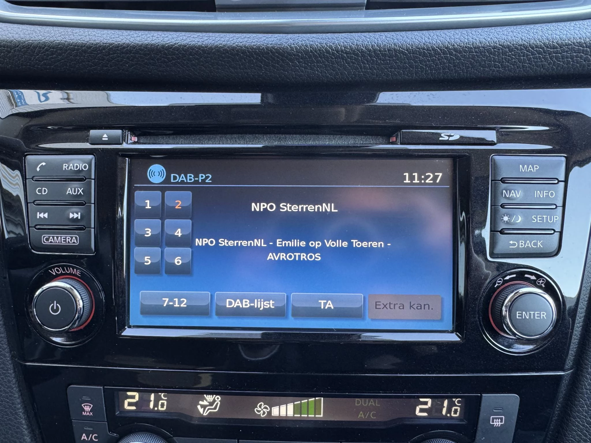 Met de 360 graden camera kun je elk detail rond de auto zien, waardoor mogelijke schade door verkeerd inschatten van afstanden vermeden wordt. Je bedient het full map navigatiesysteem en het audio-installatiesysteem met DAB-radio via knoppen op het stuur. Zo kun jij steeds jouw aandacht gericht houden op de weg. Het comfort wordt verhoogd door de aanwezige automatische airconditioning. Soms heeft u meer parkeerruimte dan je denkt. Maar soms ook niet. De parkeersensoren vertellen precies hoeveel. Achter het stuur van deze Nissan ben jij niet alleen. De auto kijkt als het ware met je mee tijdens de rit. De regensensor schakelt de ruitenwissers in als het nodig is en de automatisch inschakelbare verlichting doet de lichten voor je aan. Deze auto is voorzien van cruise control, keyless entry, automatisch dimmende binnenspiegel en lederen stuur en versnellingspook.