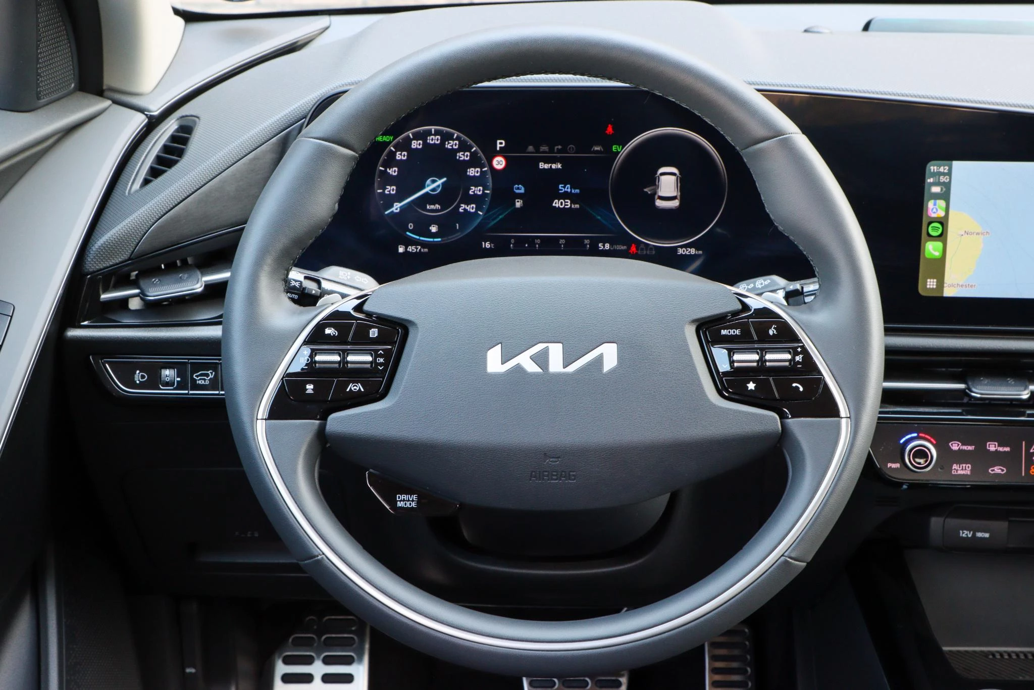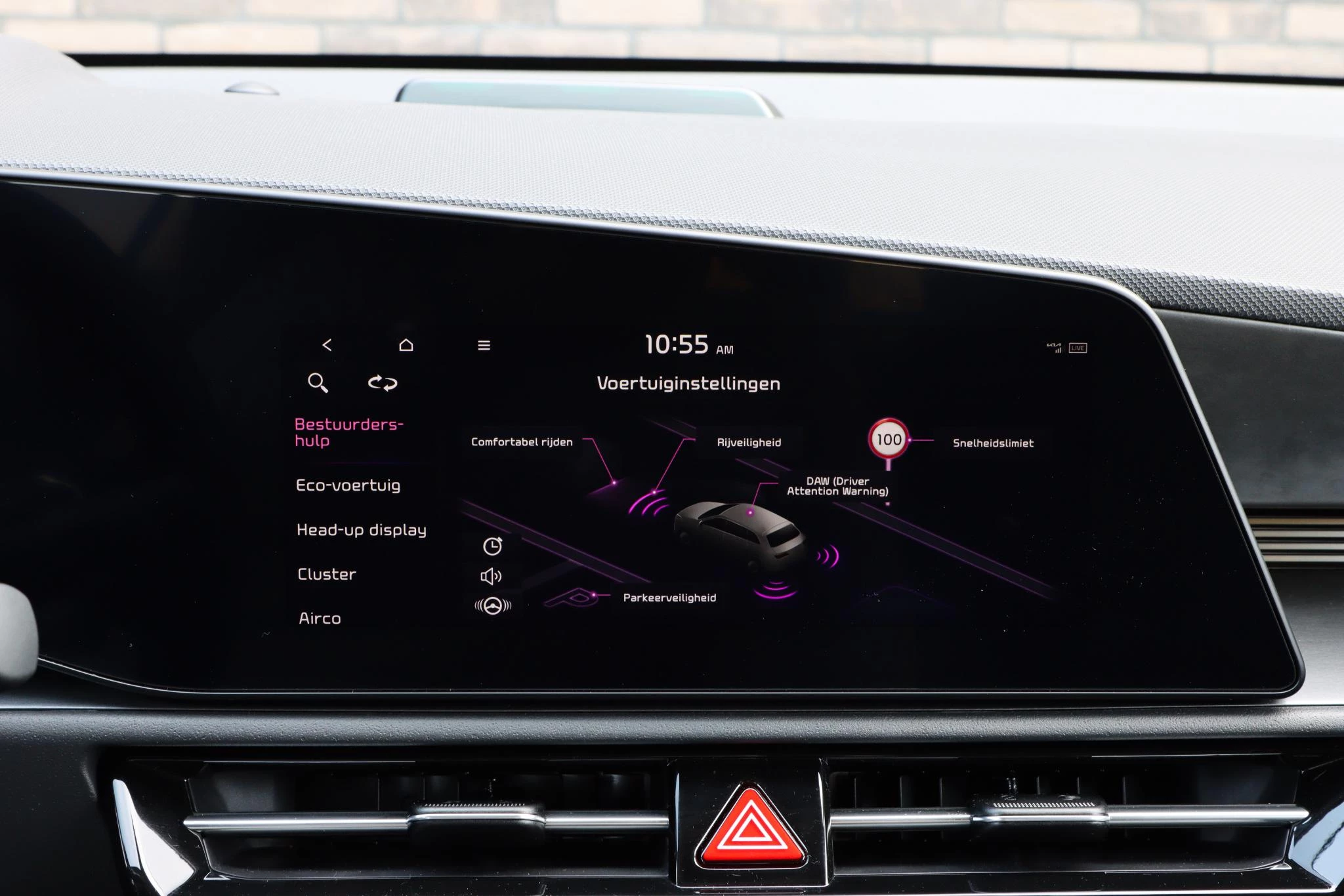 Zoals u mag verwachten van deze Kia Niro is hij uitgerust met een reeks aan actieve veiligheidssystemen. U hoeft uw ogen niet meer van de weg te halen om dashboardinformatie te checken. De head-up display projecteert het rechtstreeks in uw zichtveld. Mooi binnen de lijnen van de rijstrook blijven? Het Lane-keeping systeem helpt altijd een handje. Als een ander voertuig in uw dode hoek rijdt, waarschuwt het systeem met een signaal. U bent mede dankzij forward collision warning system, hill hold functie, vermoeidheidsherkenning, autonoom remsysteem en bandenspanningcontrolesysteem steeds veilig onderweg.