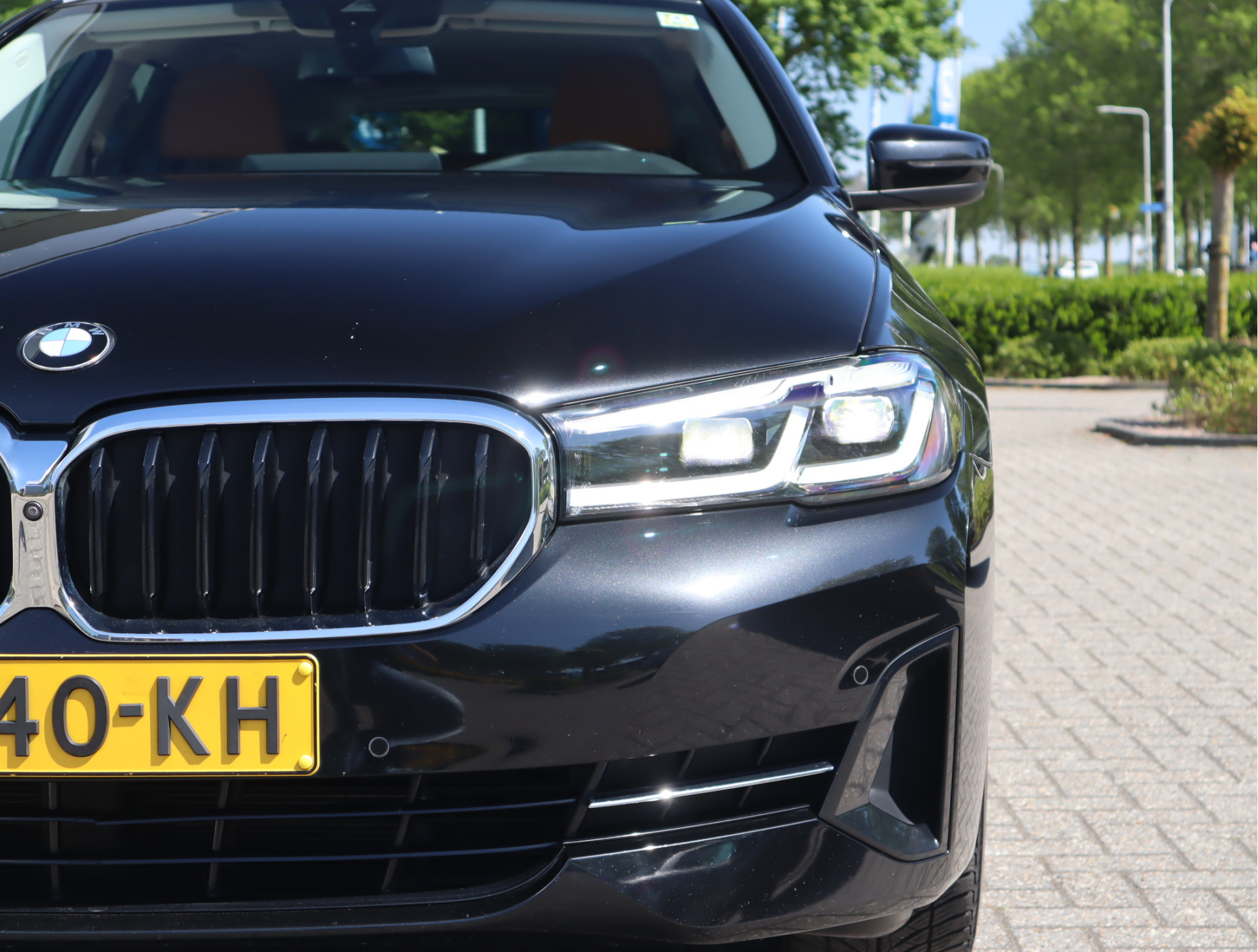 Origineel Nederlandse 5 Serie, in Saphirschwarz metallic met fraai Cognac kleurig Dakota leder, de fijne sportstoelen en een af fabriek wegklapbare trekhaak en heeft recent onderhoud gehad!