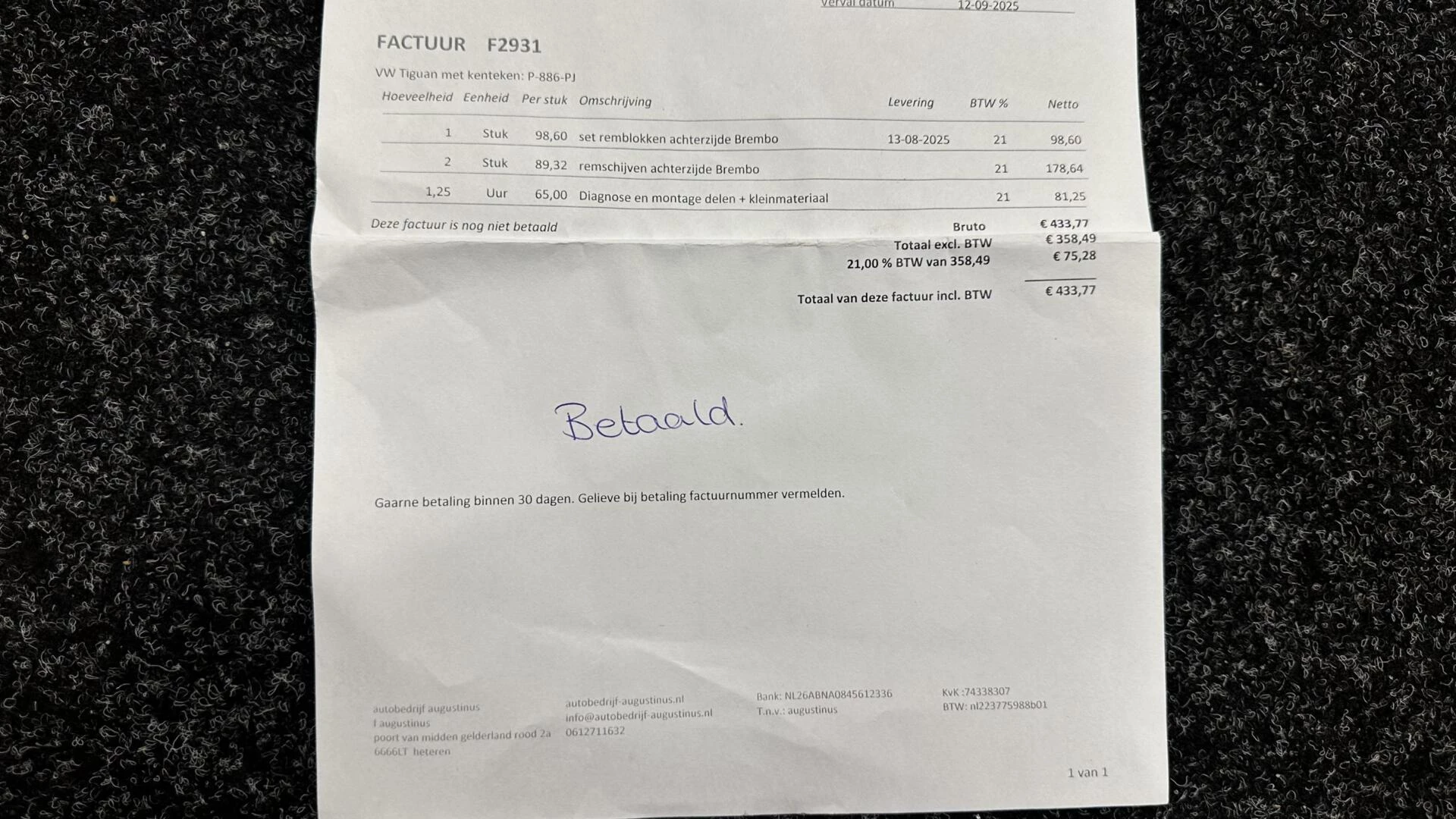 Inclusief onderhoudsbeurt.
