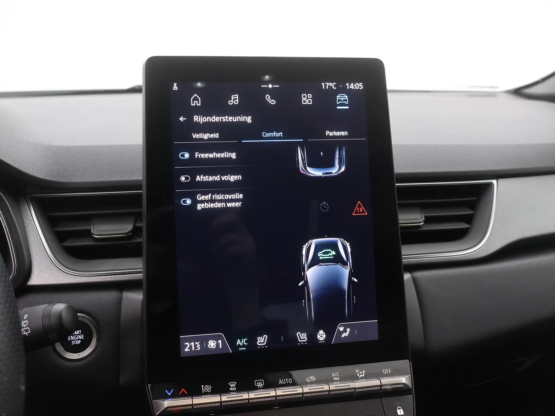 De geavanceerde technologie in deze Renault is in staat om onderweg het verkeer om u heen te monitoren en er op te reageren. Zo hebt u als het ware een automatische co-piloot aan boord. Deze Renault Captur is ook behulpzaam als het gaat om een rechte koers. Het Lane-keeping systeem signaleert en corrigeert als u onbedoeld de rijstrooklijnen dreigt te overschrijden. De sensor van het forward collision warning-systeem registreert permanent de afstand tot voorliggers en grijpt in als een botsing dreigt. Het systeem voor vermoeidheidsherkenning neemt het waar als uw concentratie verslapt en geeft u dan een waarschuwing. Ook helpen het hill hold functie, brake assist en bandenspanning controlesysteem, uw rit tot een veilige rit te maken.
