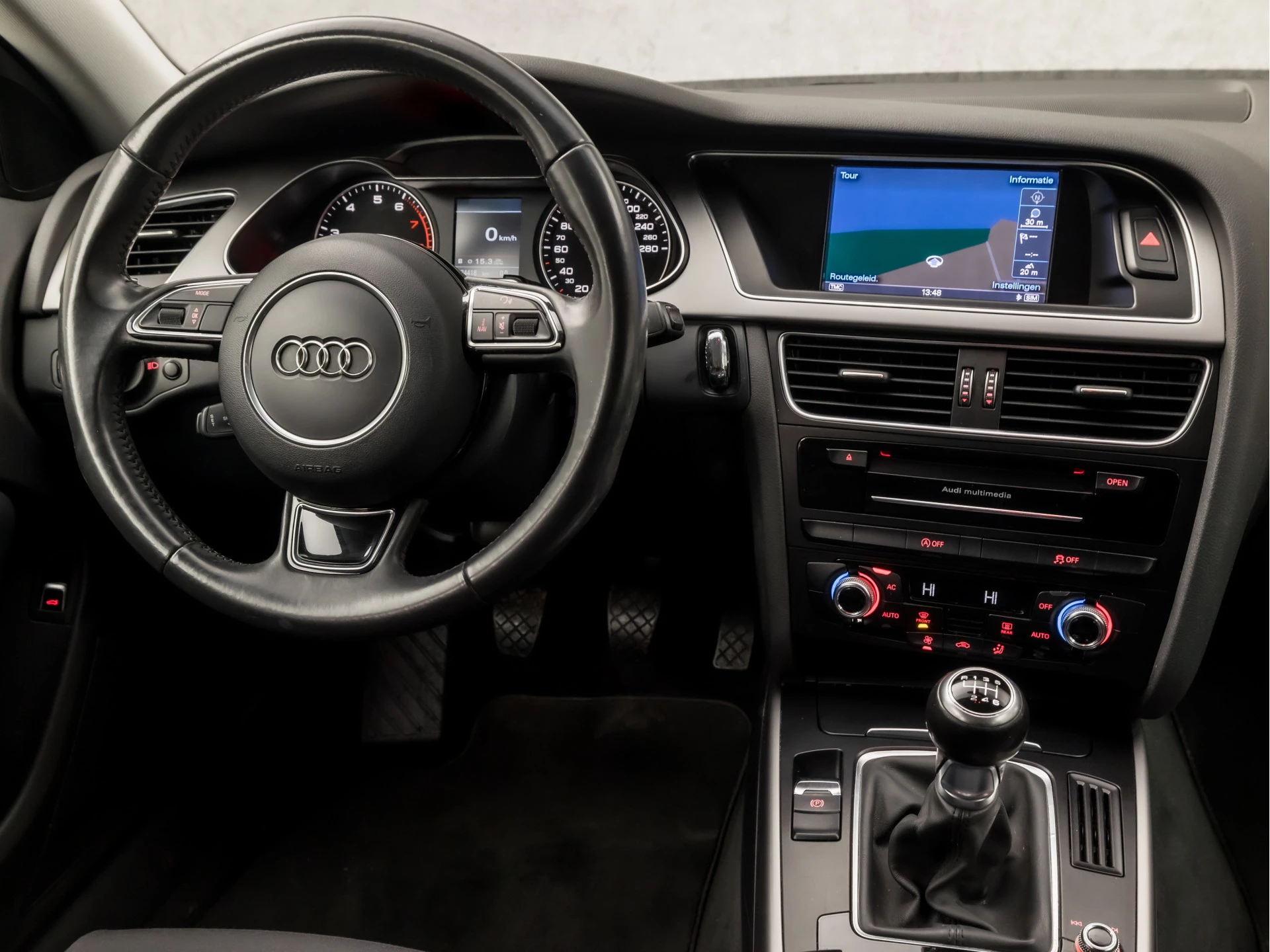 Audio-installatiesysteem en navigatiesysteem met harde schijf zijn gecombineerd. Zo wordt zelfs gesproken route-informatie een luisterervaring! En dankzij bluetooth klinkt uw favoriete playlist geweldig. Bij de luxe van deze auto hoort ook volautomatische airconditioning. De meeste schade bij inparkeren komt van een randje of paaltje dat u even niet zag. Maar de parkeersensoren zien alles en waarschuwen op tijd. De elektronische systemen in deze Audi helpen u actief om comfortabeler te rijden. Een automatisch inschakelbare verlichting en een regensensor houden de omstandigheden onderweg in de gaten. Maximumsnelheid? Even de cruise control instellen en u blijft perfect binnen de marges. Wat u ook in deze auto kunt vinden zijn lederen stuur, isofix-aansluiting, centrale deurvergrendeling met afstandsbediening, boordcomputer en lederen versnellingspook.