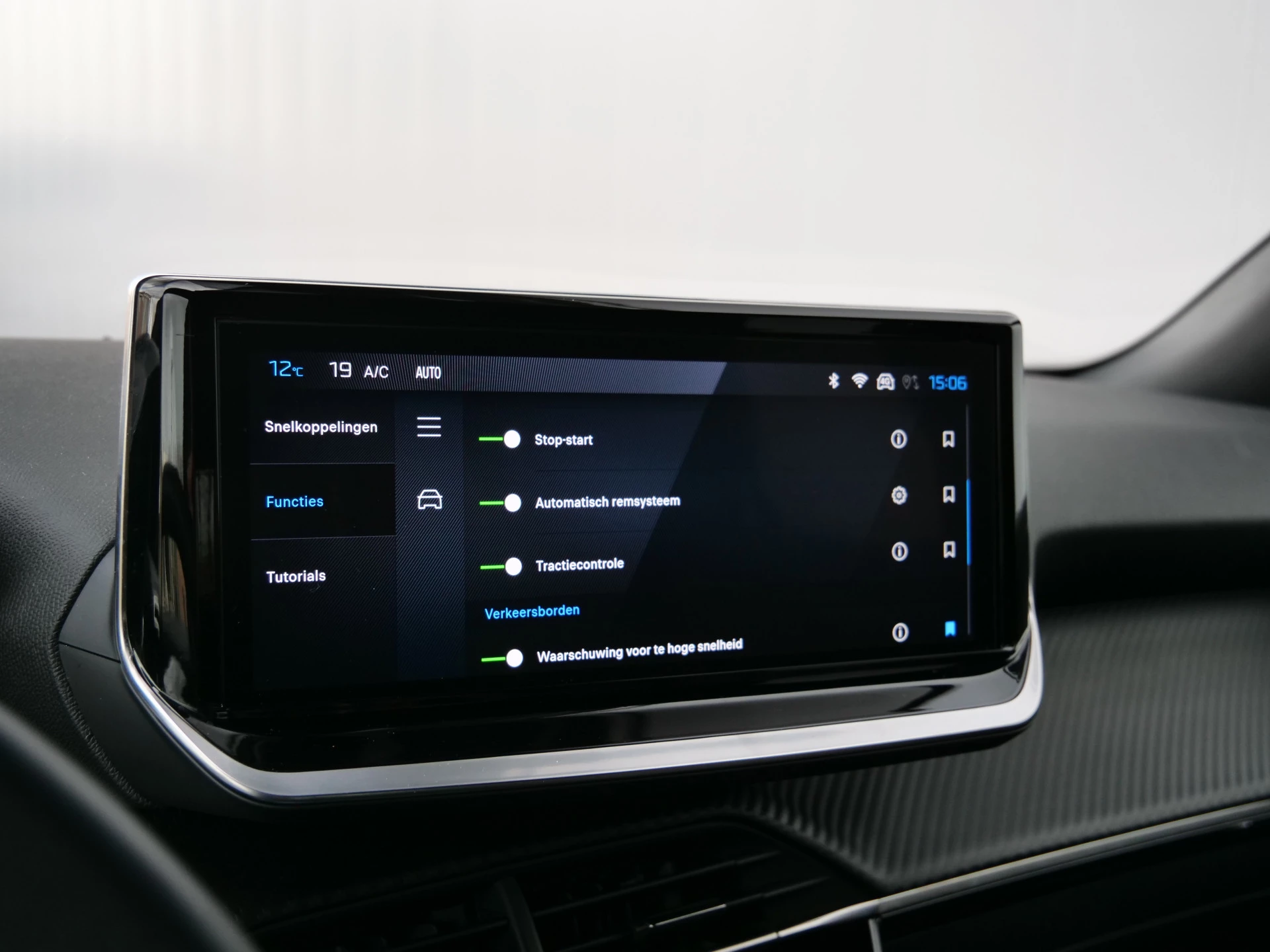 Met het digitale dashboard kunt u de cockpit-interface naar uw voorkeur instellen. Locatie, motorconditie, storingen... via Connected Services krijgt u alle vitale info over de auto door. Ook handig bij pech! Gemakkelijk en veilig is de spraakbediening voor het audiosysteem. Daarbij kunt u het ook bedienen met de knoppen op het stuur. Met de automatische airconditioning selecteert u de gewenste temperatuur. Het systeem doet de rest. Parkeersensoren ondersteunen u tijdens het in- en uitparkeren. De uitrusting van deze Peugeot is met WIFI-hotspot, regensensor, cruise control, automatisch dimmende binnenspiegel, lederen stuur en centrale deurvergrendeling met afstandsbediening behoorlijk compleet.