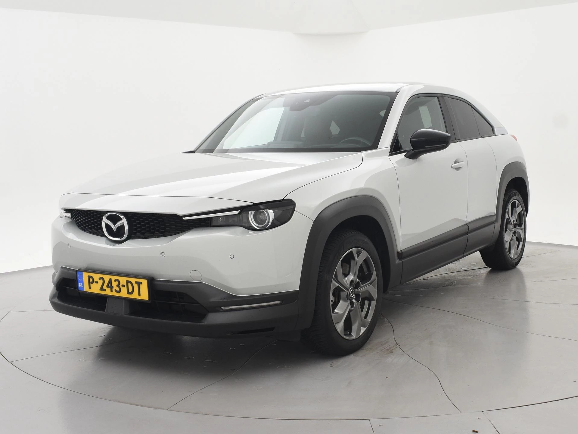 Volledig elektrisceh MX-30 in de First Edition uitvoering in het Ceramic Metallic met zwart/bruin half leder interieur, Elektrische stoelverstelling met geheugen, Head-up display, Breedbeeld Navigatie, Apple Carplay / Android Auto breedbeeld appstreaming Navigatie Google Maps, Spotify, Flitsmeister, Parkeersensoren voor + achter, Stoelverwarming, Adaptive cruise control, Elektrisch inklapbare buitenspiegels, Digitale tellers, LED koplampen, LED achterlichten, Climate control, Privacy glass.