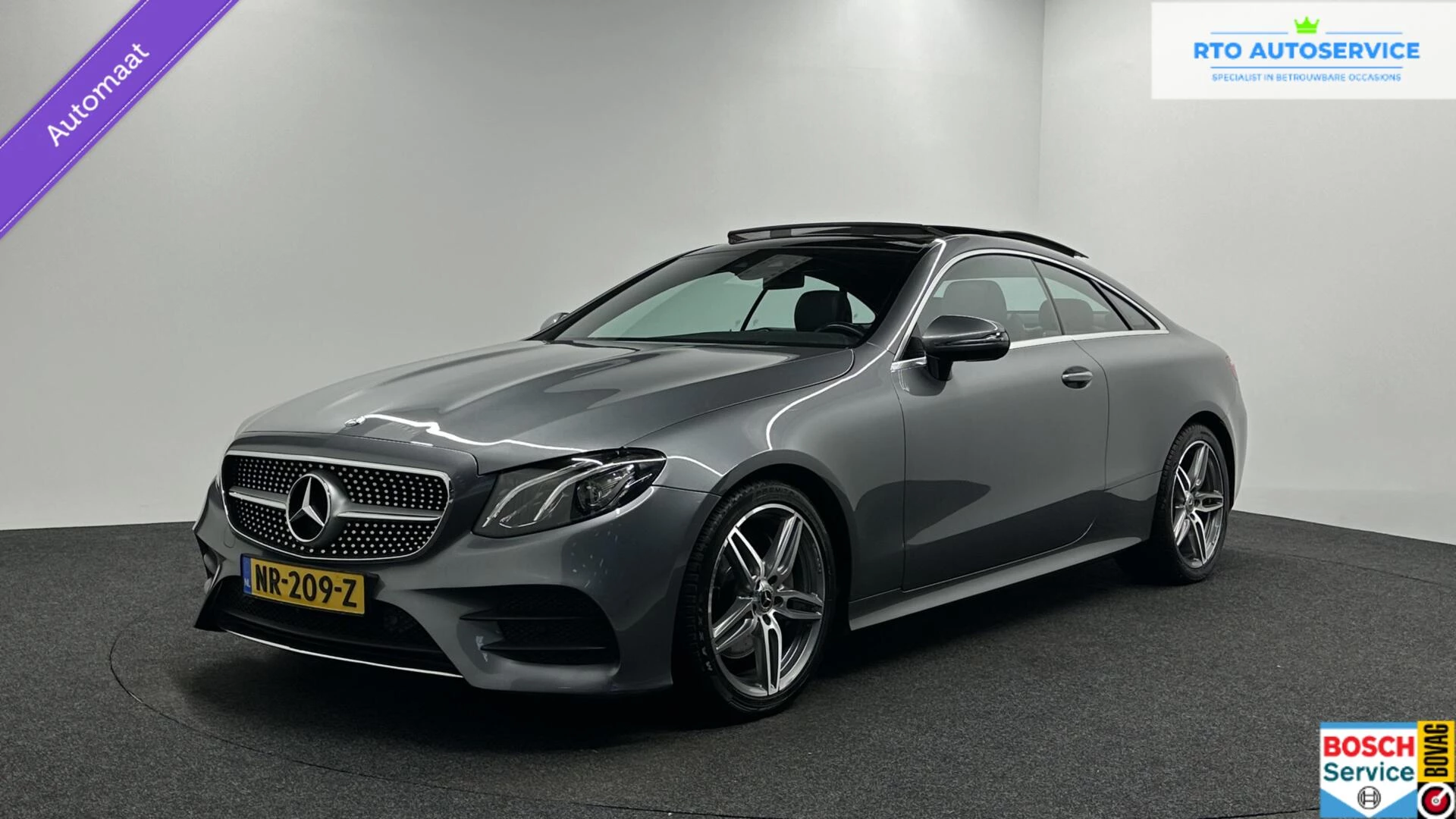 Deze zeer gunstig geprijsde Mercedes E-klasse Coupé is zonder overdrijven echt een fantastische occasion. De AMG-styling geeft een niet te missen uitstraling. Hij heeft een benzinemotor en een automatische transmissie. De leren bekleding is niet alleen mooi om te zien, maar zorgt ook voor comfort en een rijke uitstraling. Tijdens gure dagen is het prettig zitten in de verwarmbare voorstoelen. Ziet er goed uit, die sportstoelen. Maar waar het om gaat, is de solide zit onder alle omstandigheden. Wat een licht geeft dat glazen elektrisch bedienbare panoramadak. Bij de rijke uitrusting horen ook 20 inch lichtmetalen velgen, LED koplampen, AMG-styling, sportonderstel, warmtewerend glas en zwarte hemelbekleding.