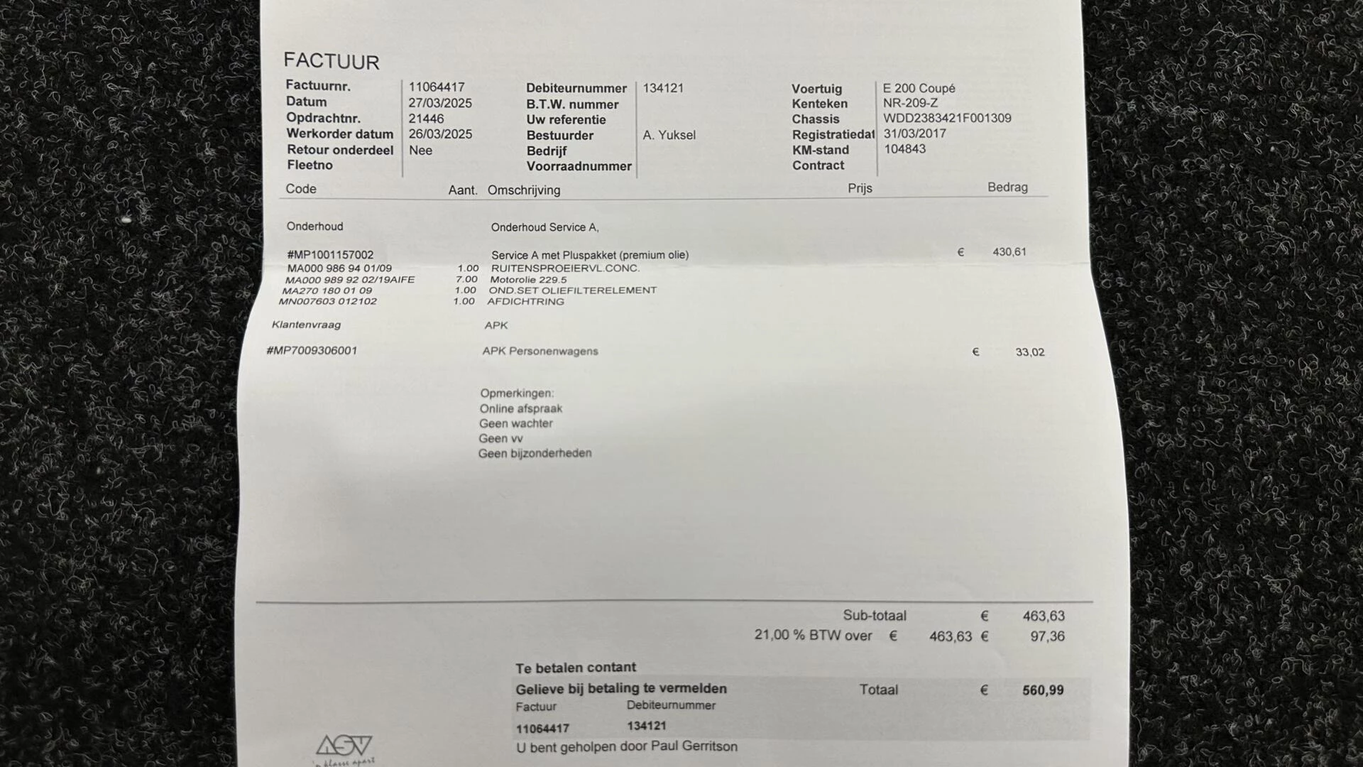 Inclusief onderhoudsbeurt.