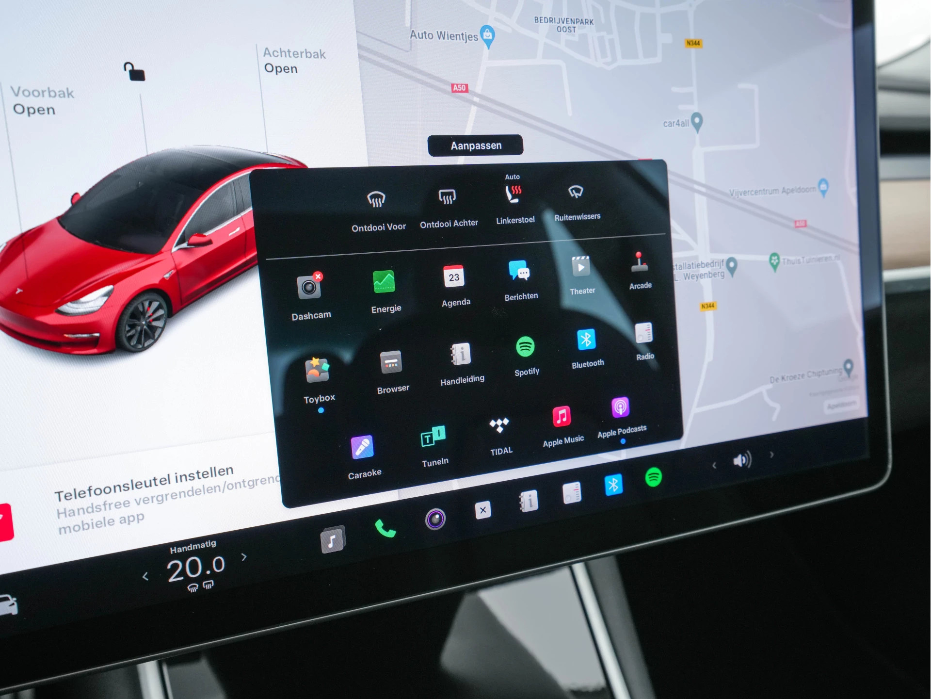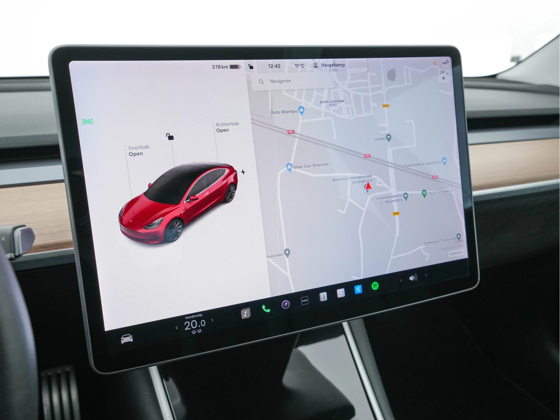 Zoals u mag verwachten van deze Tesla Model 3 is hij uitgerust met een reeks aan actieve veiligheidssystemen. Het forward collision warning-systeem is constant alert en detecteert via sensor de afstand tot voorliggers. Wordt die te klein, dan volgt een automatische waarschuwing. In deze Tesla vinden we verder een dodehoekdetectie en autonoom remsysteem.