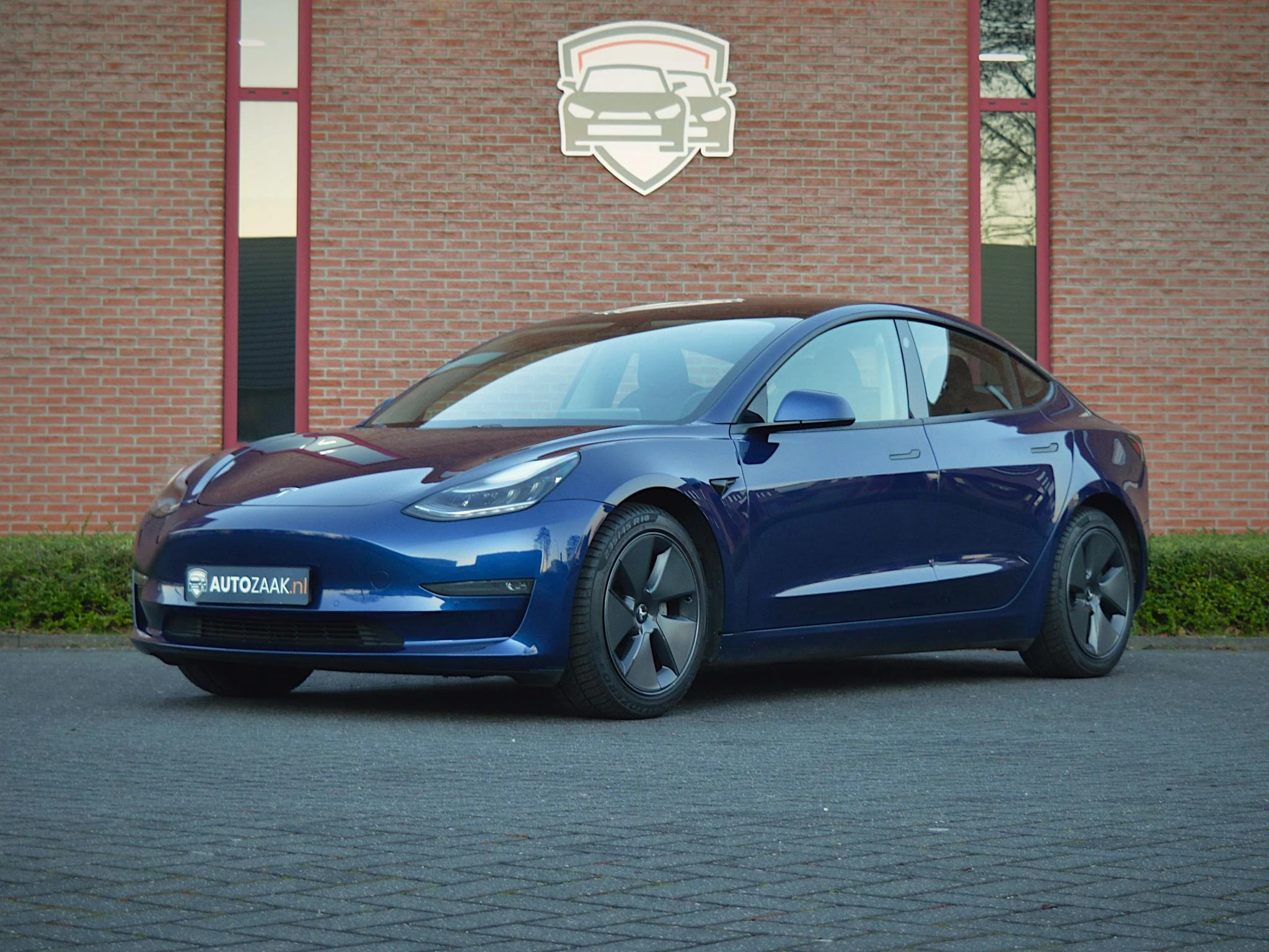 Uit voorraad leverbaar (€ 26.157,- excl. BTW). Tesla Model 3 Long Range Dual Motor AWD upgrade 2021 'Refresh' (facelift) in Deep Blue metallic, in combinatie met Premium interieur zwart. Actieradius (WLTP): 602 km*