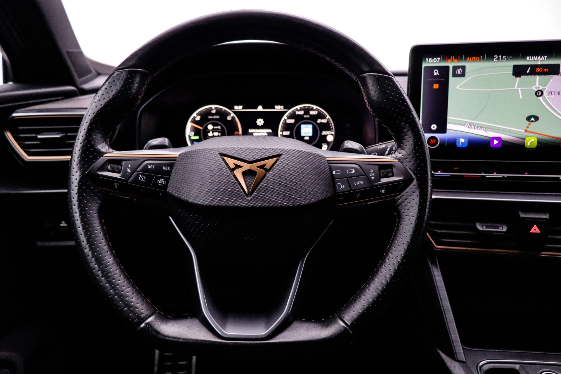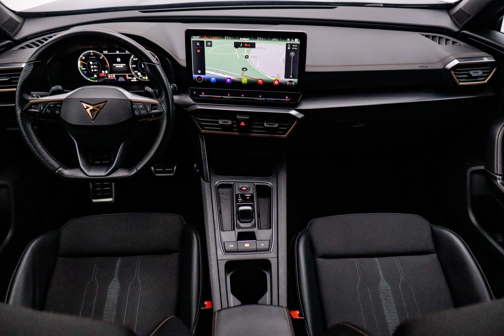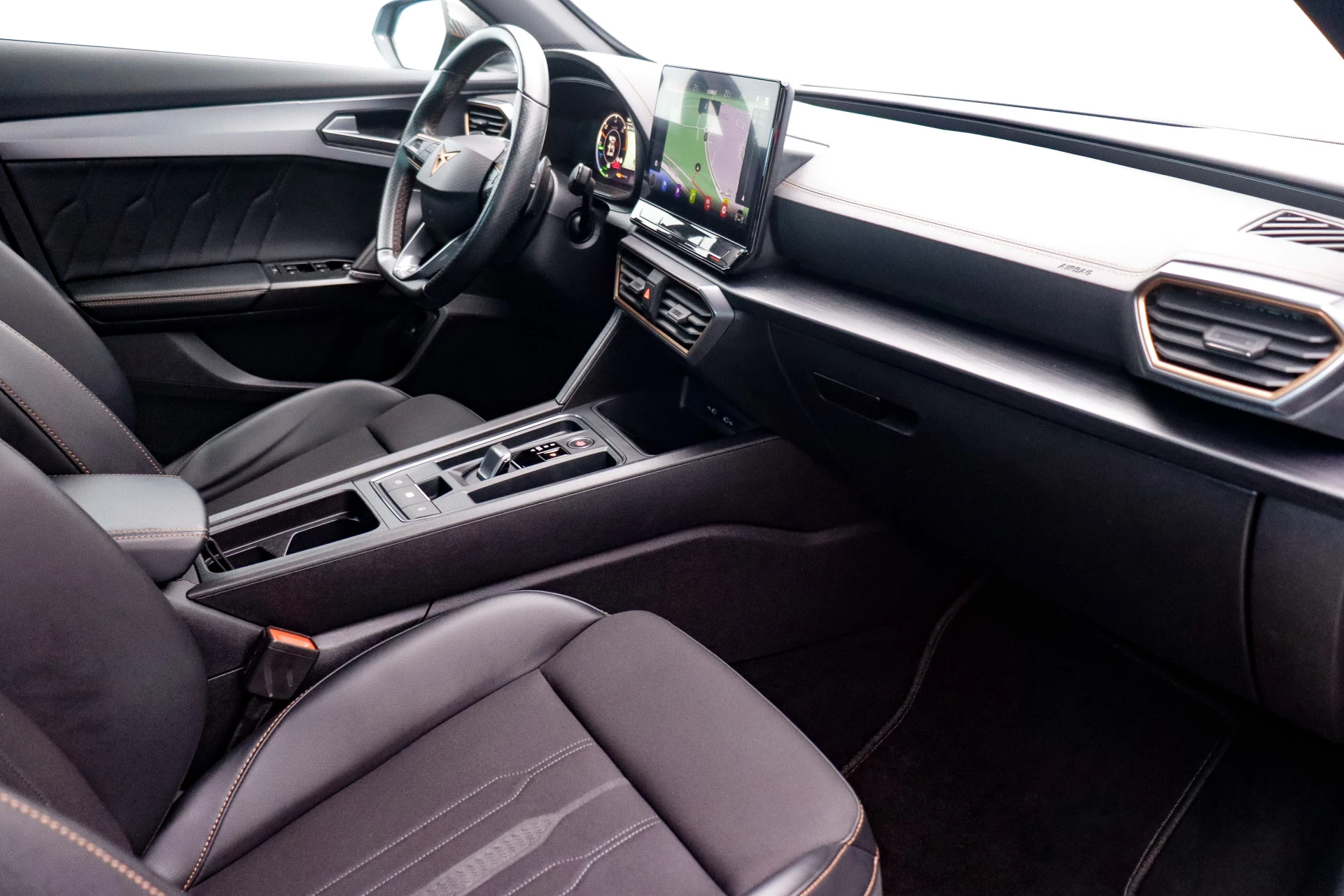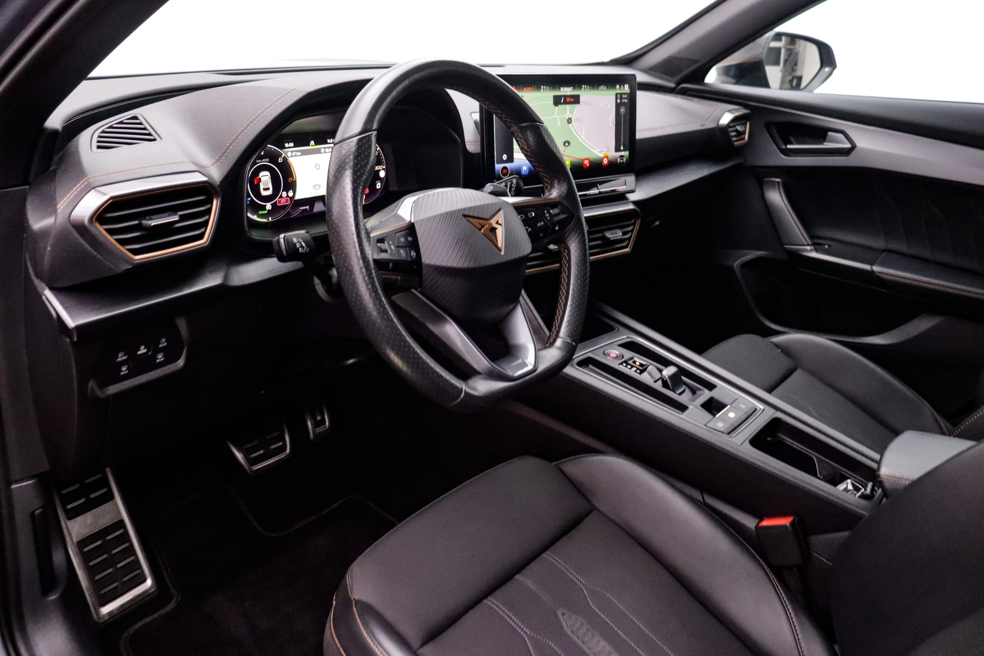 De nieuwste veiligheidssystemen komen in deze CUPRA Formentor samen. Belangrijk voor uw veiligheid en die van uw passagiers is de verkeersbord-detectie in deze auto. Het Lane-keeping systeem zorgt dat u mooi binnen de lijntjes blijft. Ongemerkt buiten de rijstrook komen is er niet meer bij. Deze CUPRA Formentor blijft altijd alert. Zo wordt gebruik gemaakt van forward collision warning. Bij het mogelijke risico op een aanrijding met een voertuig voor u, slaat het systeem alarm. U bent mede dankzij dodehoekdetectie, hill hold functie, vermoeidheidsherkenning, autonoom remsysteem en bandenspanningcontrolesysteem steeds veilig onderweg.