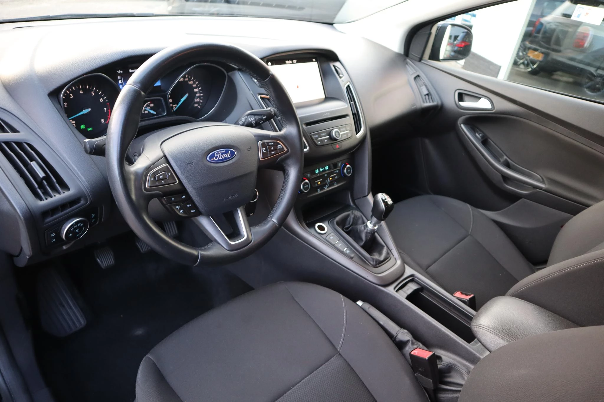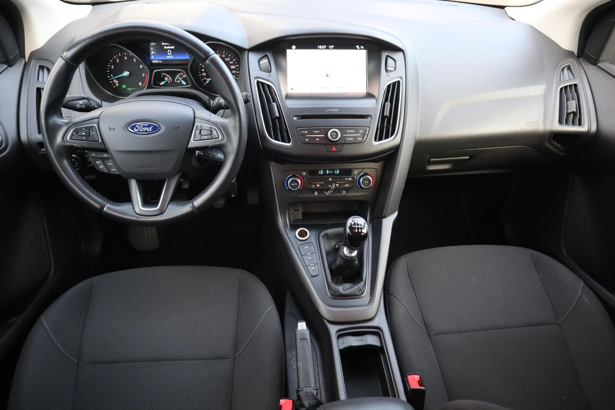 De achteruitrijcamera levert eersteklas parkeerservice. U weet precies hoeveel ruimte u nog heeft, in beeld en geluid. Het navigatiesysteem brengt u vlot naar uw bestemming, terwijl u luistert naar het glasheldere geluid van het audio-installatiesysteem met DAB-radio. De automatische airconditioning zorgt onder alle omstandigheden voor een prettige temperatuur. In deze Ford kunt u zich concentreren op het verkeer, terwijl de auto de omgeving voor u in de gaten houdt. Een automatisch inschakelbare verlichting zorgt dat de verlichting aangaat als het donkerder wordt - in tunnels bijvoorbeeld - en de regensensor schakelt de ruitenwissers in als het nodig is. U hoeft er niets aan te doen. Maximumsnelheid? Even de cruise control instellen en u blijft perfect binnen de marges. Ook is de Ford uitgerust met: dashboard met spraakbediening, keyless entry, automatisch dimmende binnenspiegel, lederen stuur en versnellingspook en boordcomputer.