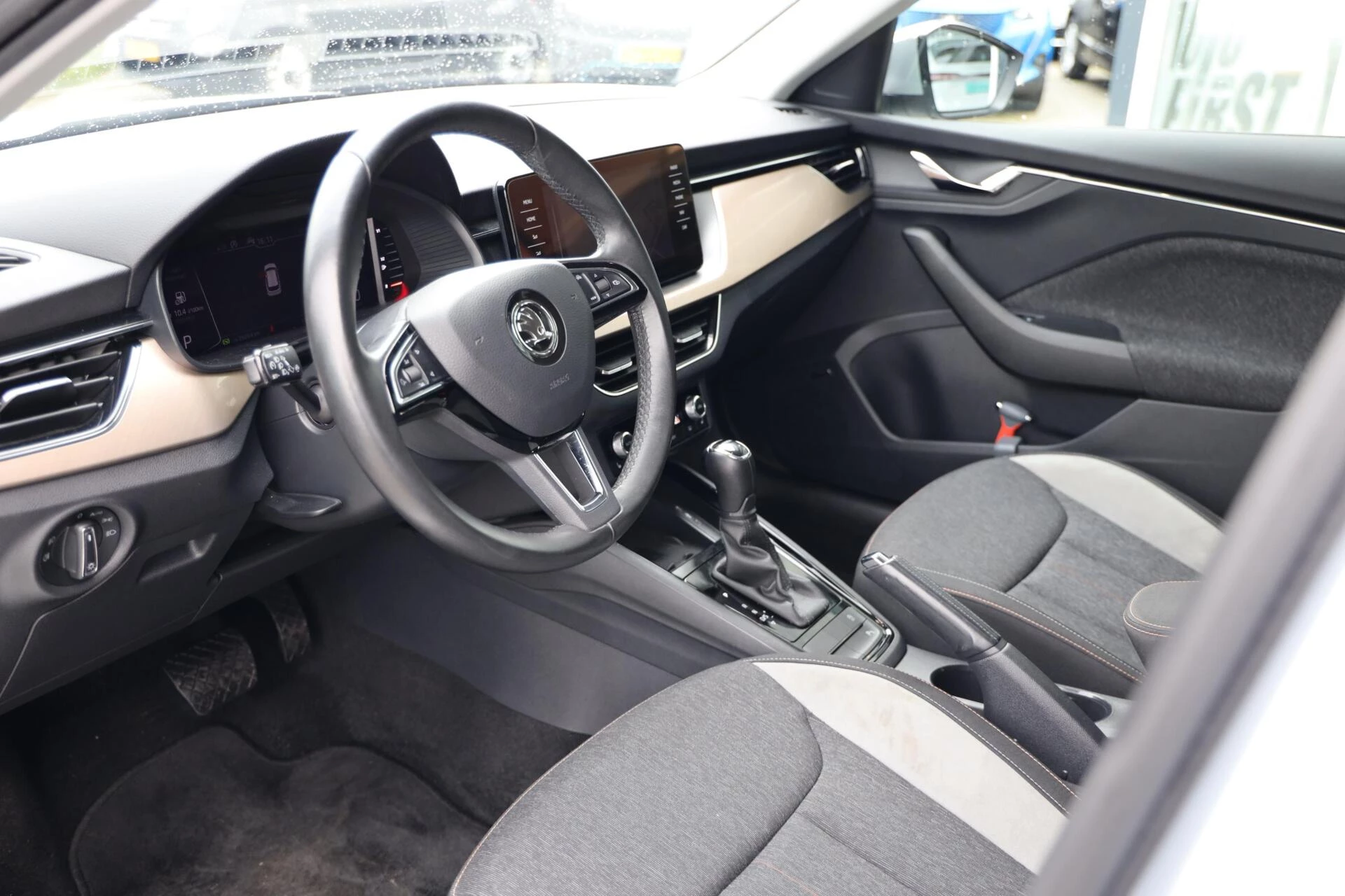 Voor het overzicht tijdens iedere rit is deze Skoda Kamiq voorzien van een gemakkelijk afleesbaar digitaal dashboard. Uw smartphone is tegenwoordig de sleutel tot heel veel. Ook voor deze auto. Remote services, noemen we dat. Waar u ook bent, contact houden is een eitje. Een massieve sound of fluisterzachte verstaanbaarheid? Het high performance audiosysteem presteert op topniveau. Smartphone in het rood? Geen punt, de draadloze telefoonlader zorgt voor een volle accu. Ook is de auto voorzien van electronic climate control. Ook dashboard met spraakbediening, navigatiesysteem met harde schijf, DAB ontvangst, parkeersensoren achter, regensensor en cruise control horen tot de voorzieningen op deze auto.