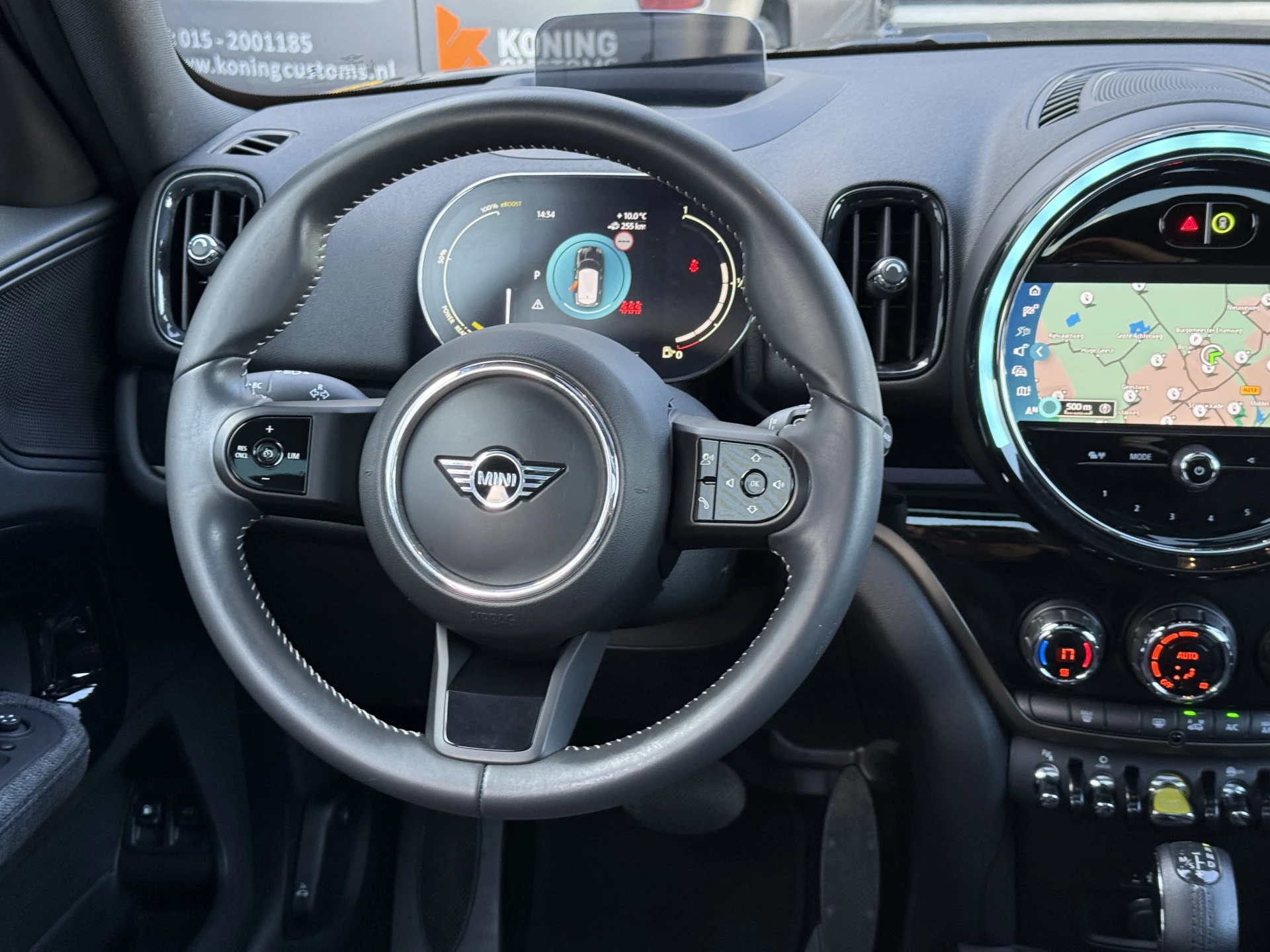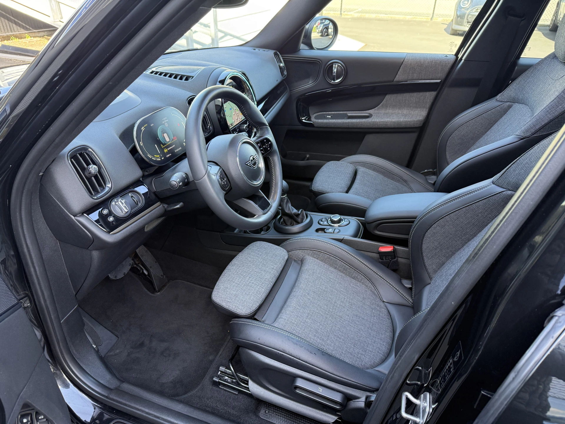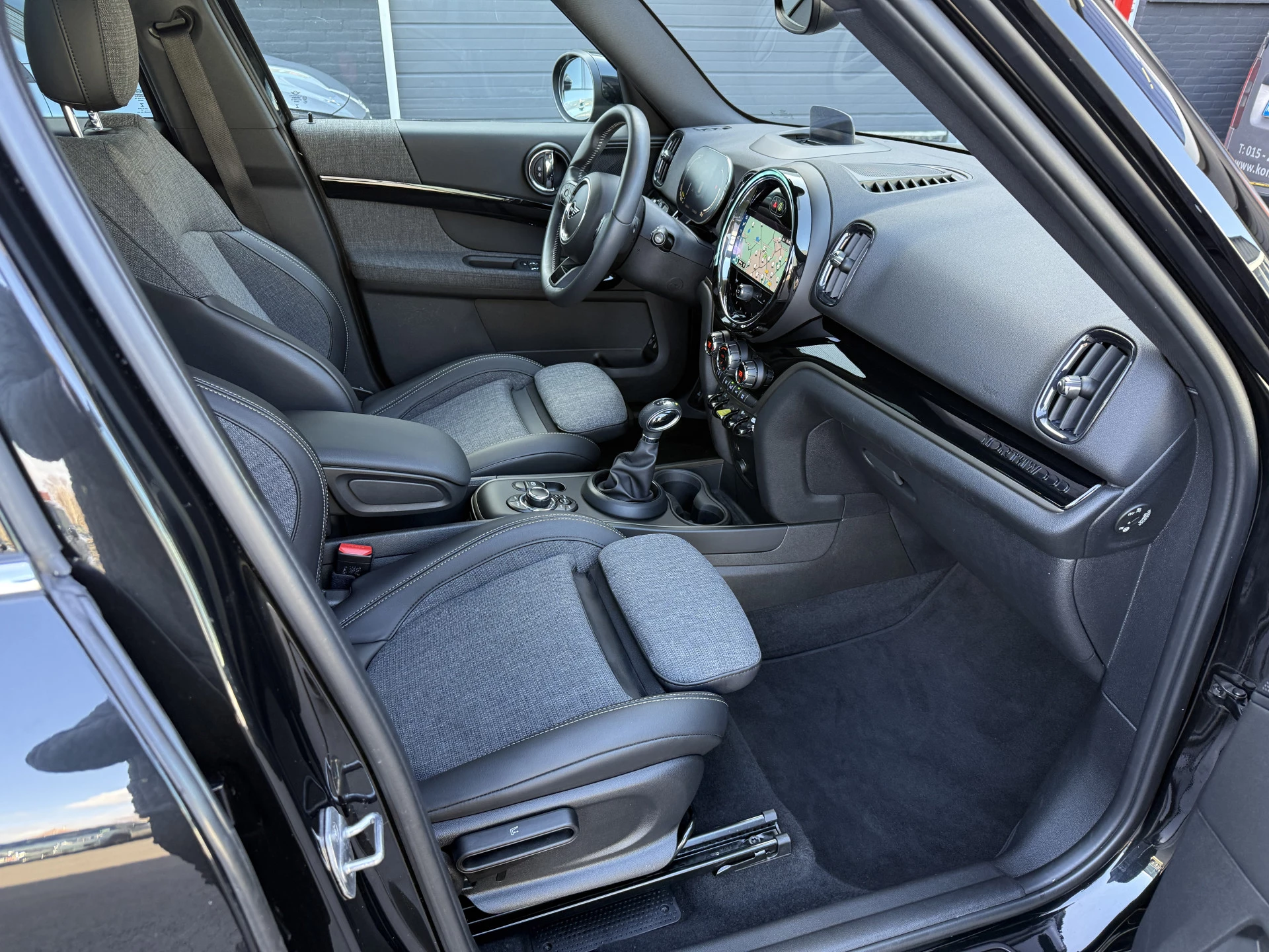 Schitterende Mini Countryman 2.0 Cooper SE ALL4 Plug in Hybrid Northwood in Midnight Black metallic met 19 inch licht metalen velgen en Black Optic pakket. Deze Mini is bijzonder compleet uitgerust met onder andere de volgende opties: Panorama dak, half lederen bekleding, Apple Carplay, achteruitrijcamera, navigatie, virtuele cockpit, Head Up display, cruise control, keyless entry, parkeersensoren voor + achter met parkeer assistent, etc..