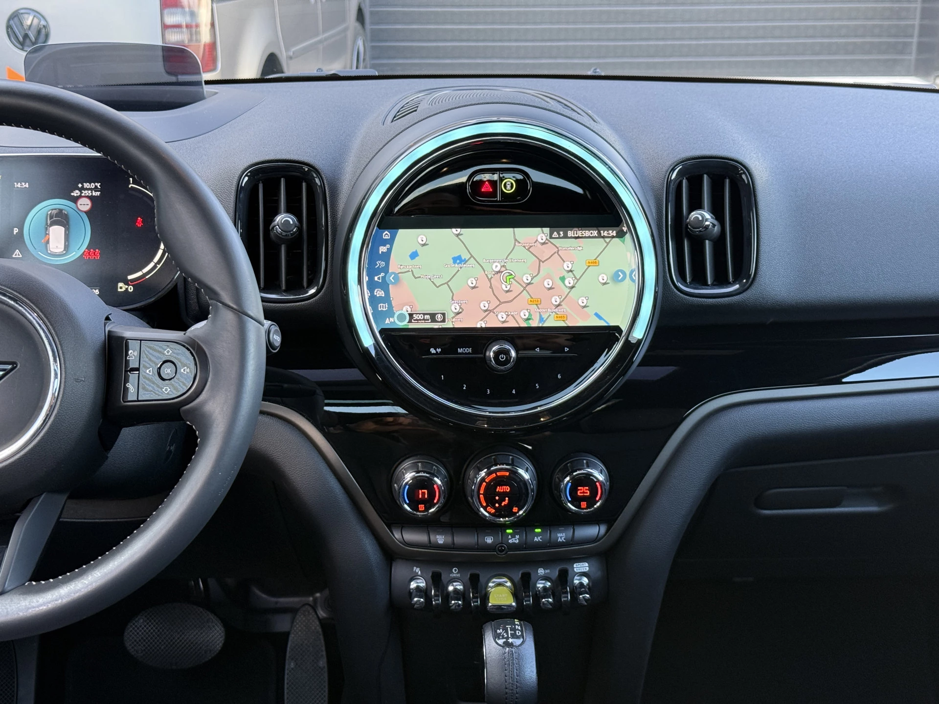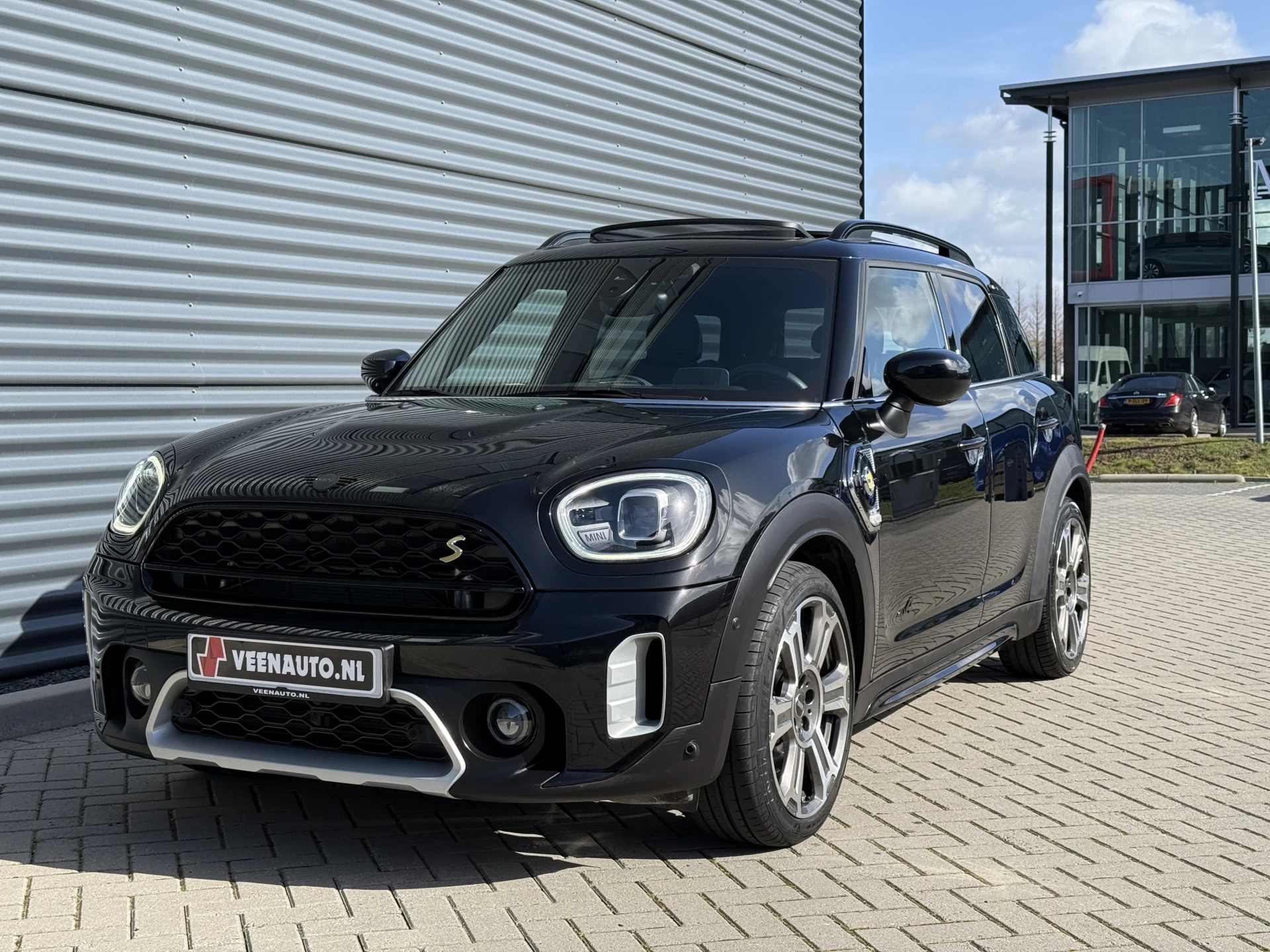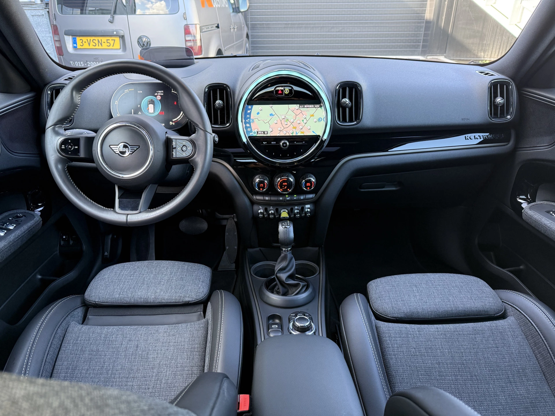 Schitterende Mini Countryman 2.0 Cooper SE ALL4 Plug in Hybrid Northwood in Midnight Black metallic met 19 inch licht metalen velgen en Black Optic pakket. Deze Mini is bijzonder compleet uitgerust met onder andere de volgende opties: Panorama dak, half lederen bekleding, Apple Carplay, achteruitrijcamera, navigatie, virtuele cockpit, Head Up display, cruise control, keyless entry, parkeersensoren voor + achter met parkeer assistent, etc..